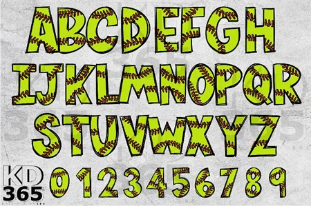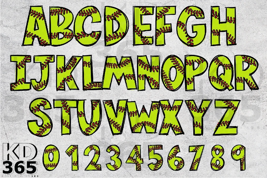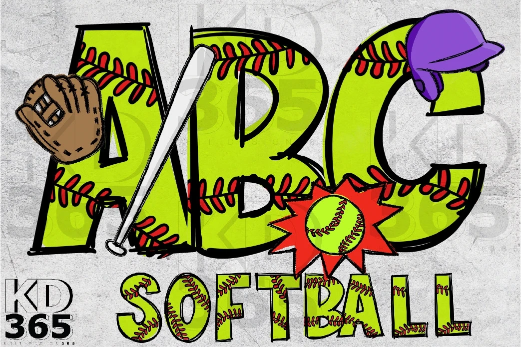 Creative with this Alphabet PNG Sublimation Design a softball pattern outline doodle hand-drawn style.
