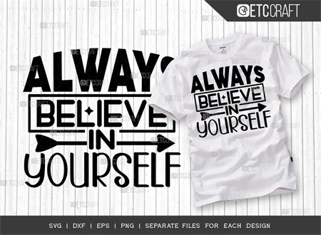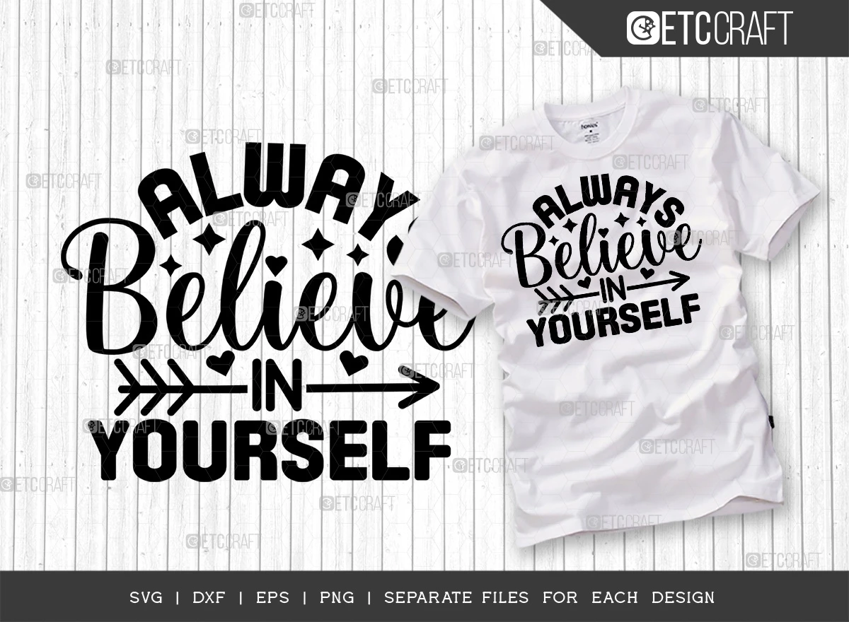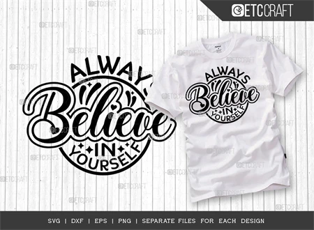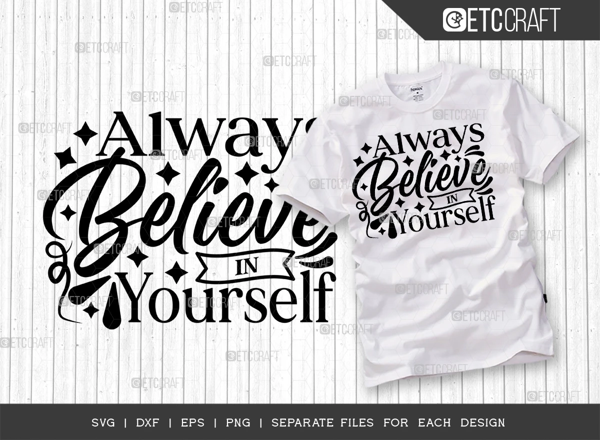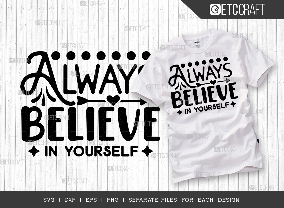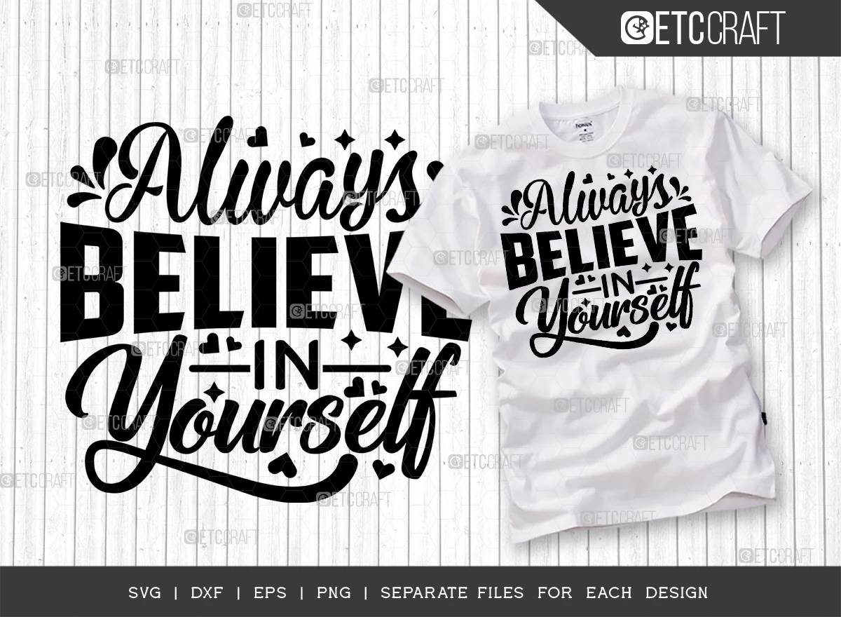 Introducing the "Always Believe In Yourself" SVG Bundle T-Shirt Design - Boost your confidence and style with this inspiring design!