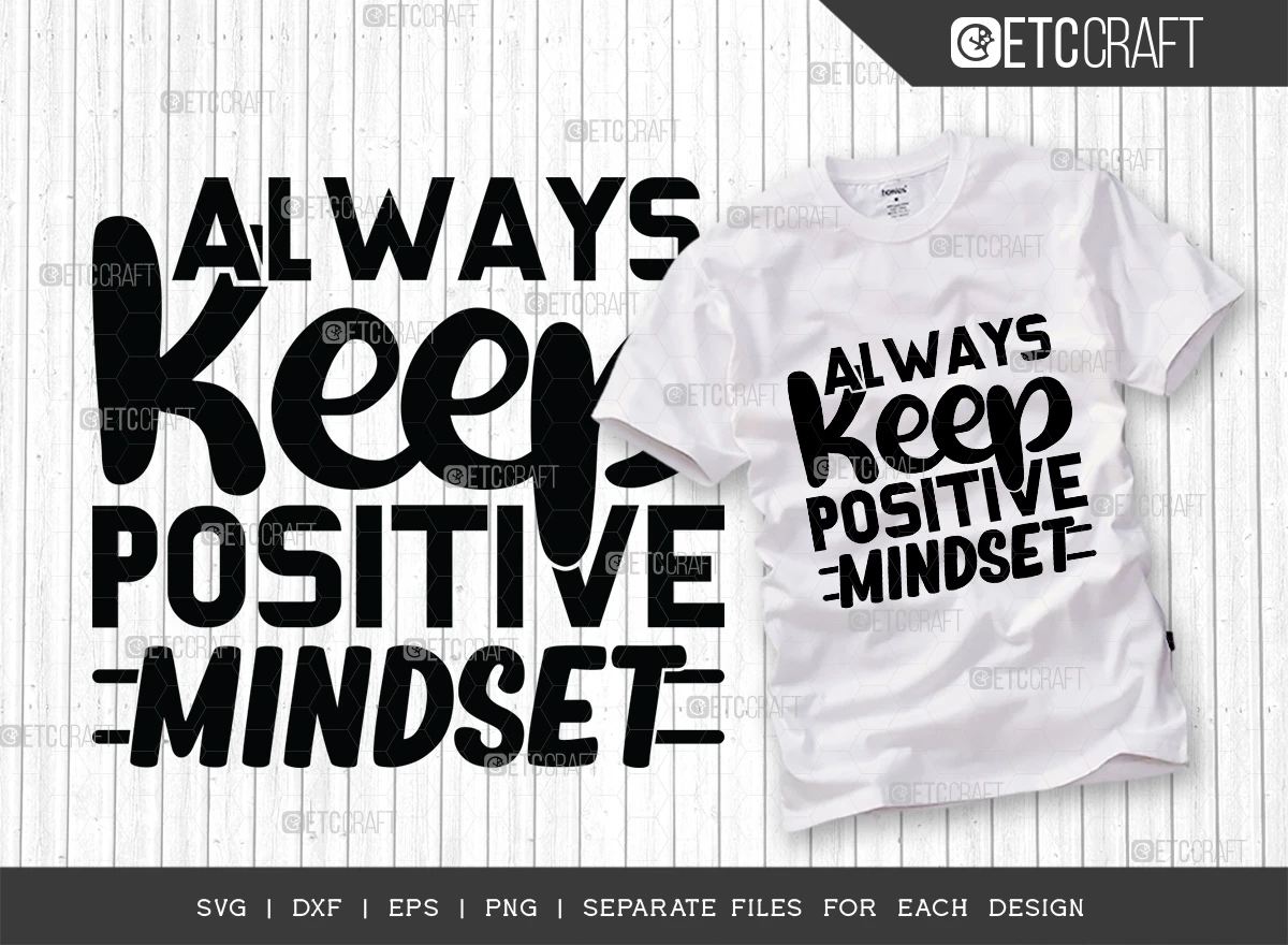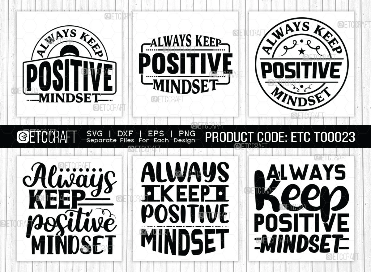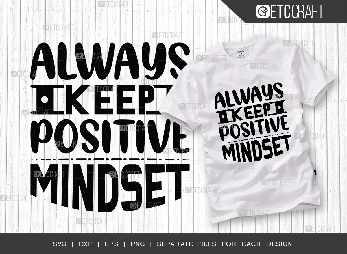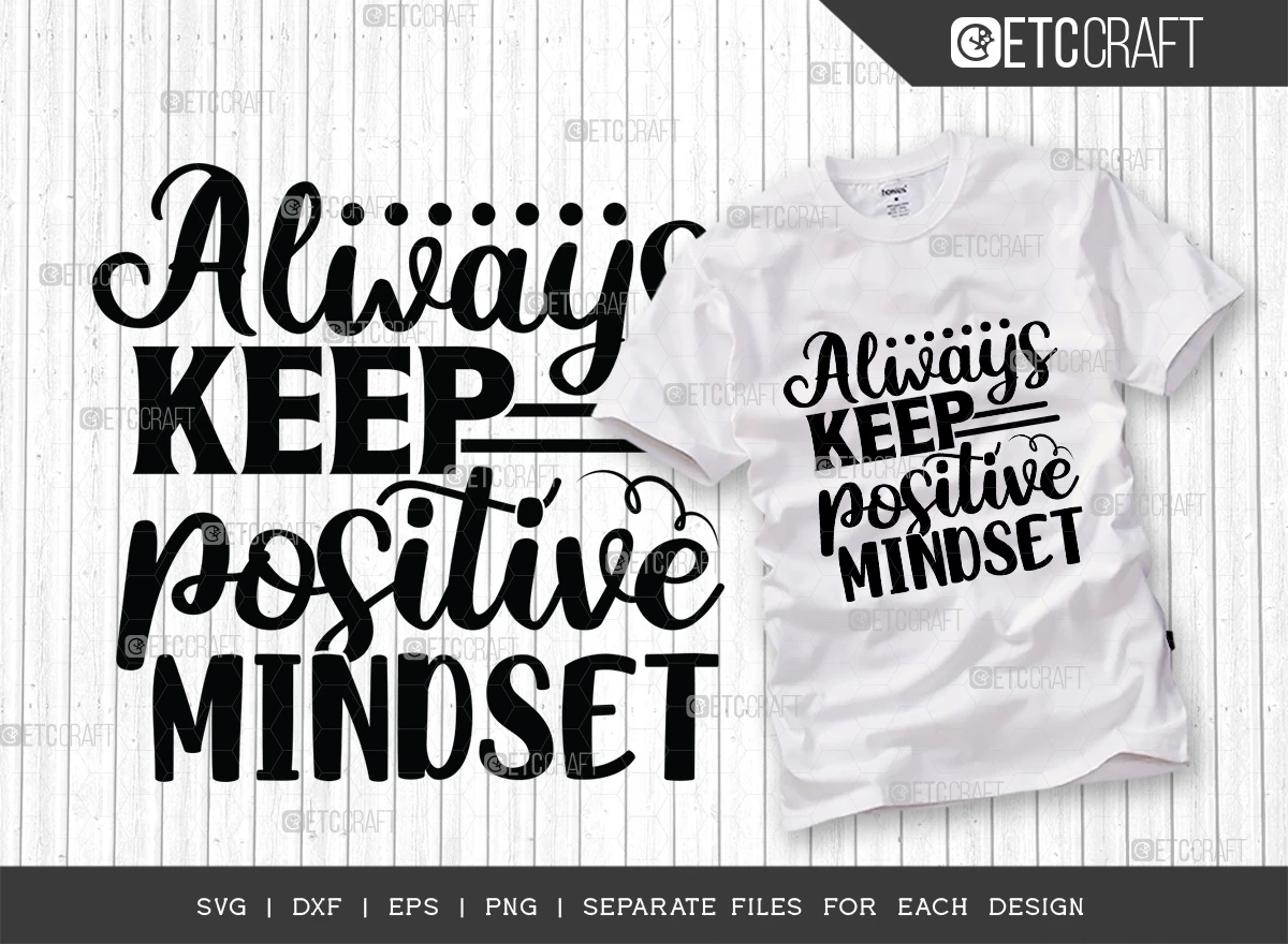 The Always Keep a Positive Mindset SVG Bundle is a collection of high-quality SVG files that can be used to create a variety of personalized products, including t-shirts, mugs, posters, and more. The files feature the phrase "Always Keep a Positive Mindset" in a variety of fonts and colors, making them perfect for anyone who wants to promote a positive attitude.