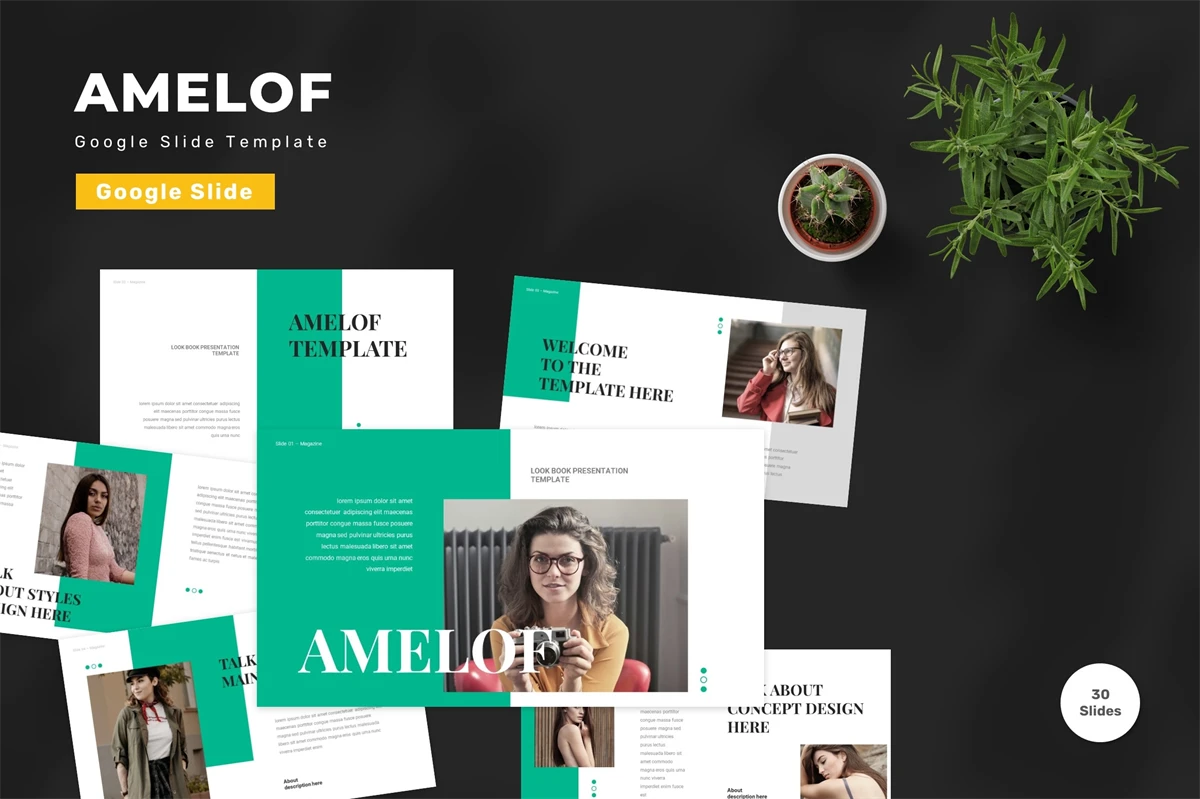 Get it now! **Amelof - Google Slide Template** for All Business and Personal Needs All elements on this template are editable; input your content, replace your image with a placeholder, change the color, and all presentations include an animated slide to present your slides.