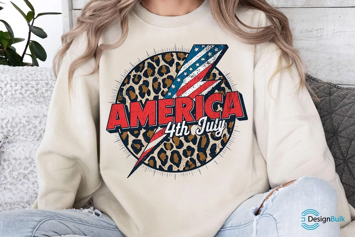 Patriotic Graphics: Includes elements like the American flag, stars, fireworks, and bold typography with phrases such as Happy 4th of July or Land of the Free.