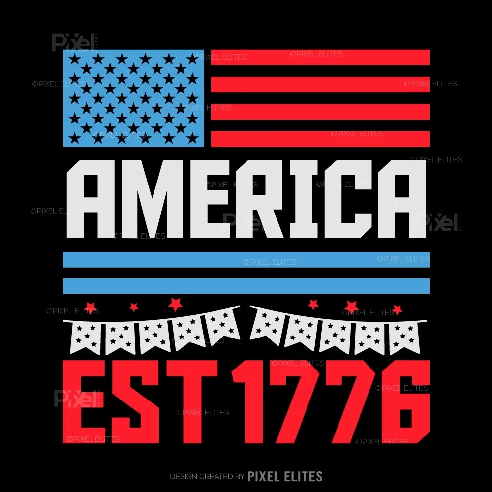 America EST 1776 SVG Independence Day T-shirt Design Bundle Memorable Day with American Quote