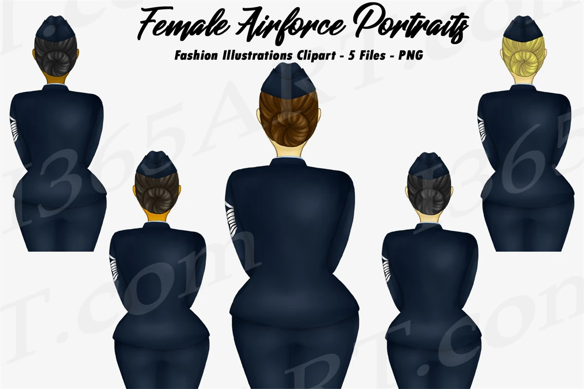 This set contains 5 hand drawn illustrations of air force women vets. Can be used in various projects including planner stickers, stationary, scrapbooking, party invitations, crafts, decorations and more!
