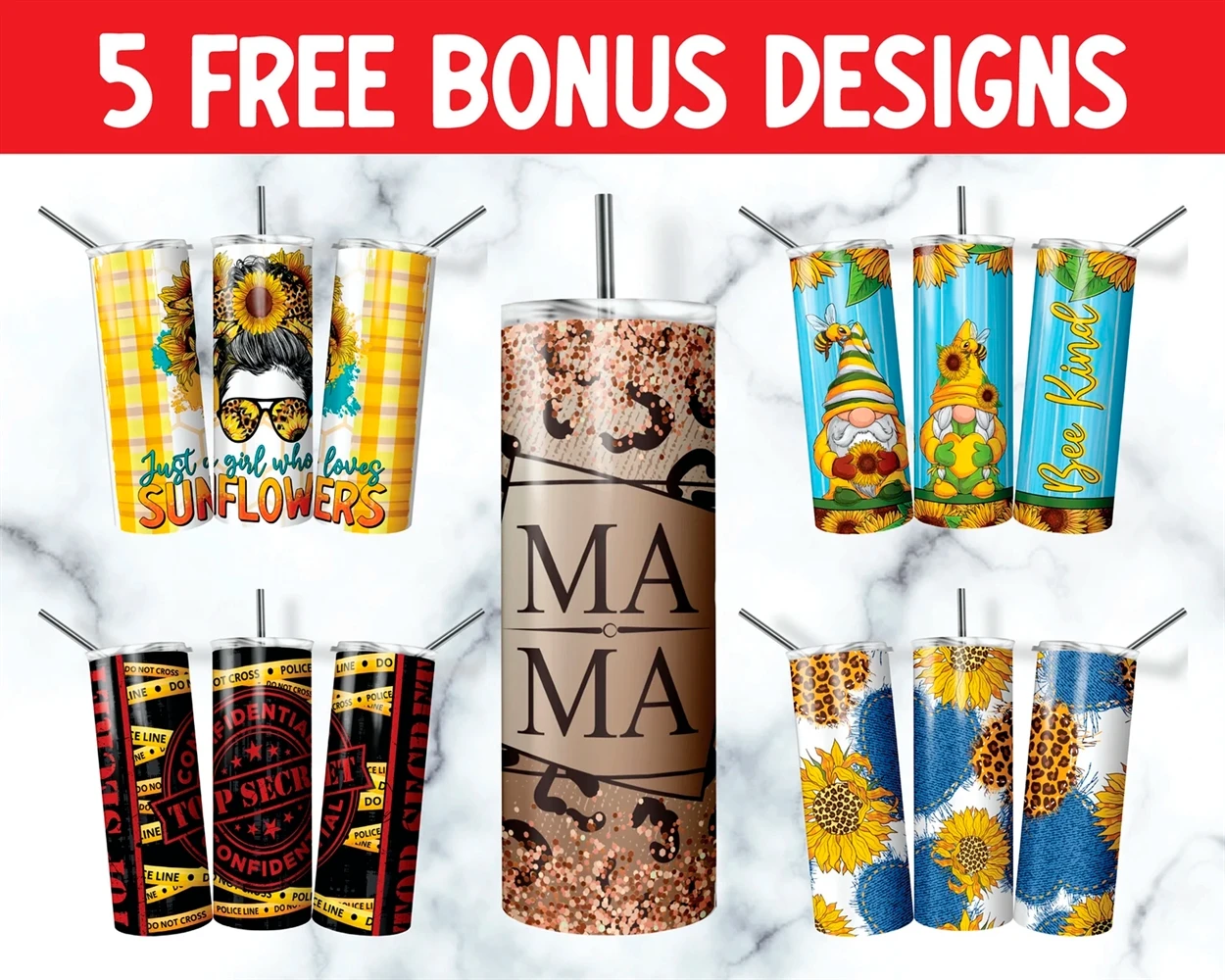 This sublimation design is intended to be used on 20oz skinny tumblers. Perfect for gift giving, making one for yourself, or putting on a substrate to sell. Add your own name or monogram, PNG/SVG graphic design, or leave it as is! There's so much you can do to it.