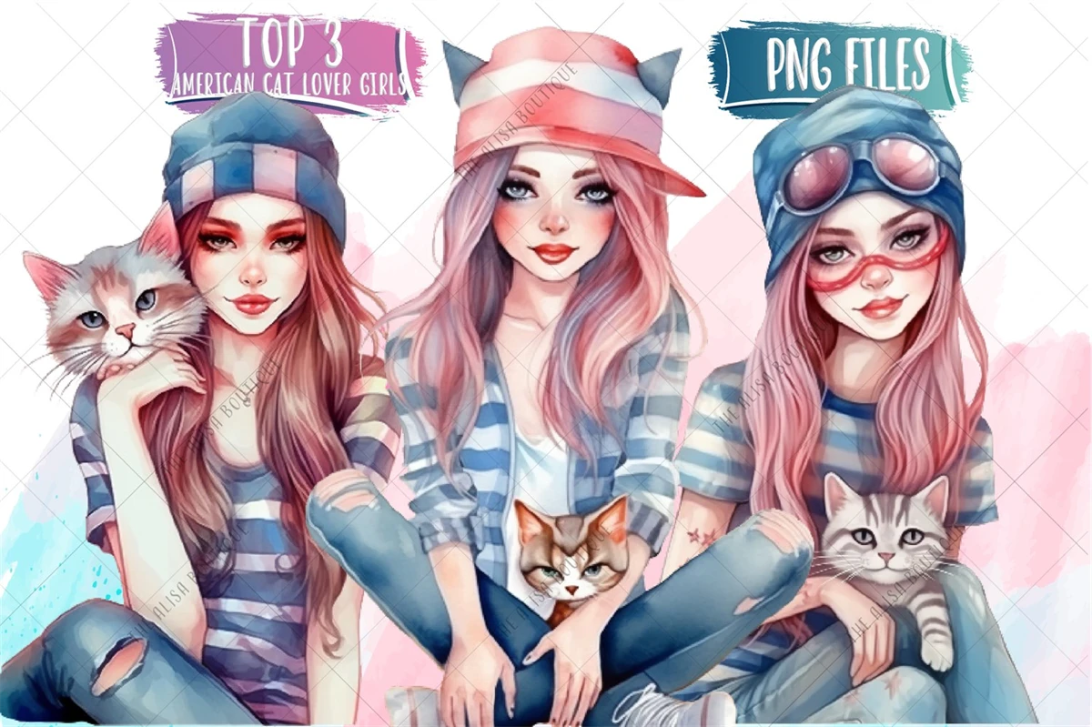 Express your love for cats and American pride with our exclusive collection of American Cat Lover Girls Clip Art. These adorable PNG files feature charming illustrations of girls with cats, wearing patriotic outfits, and engaging in fun activities. Perfect for crafting, digital designs, party invitations, and more, these clip art elements will add a touch of feline and patriotic flair to your creations. Download now and let your creativity soar!