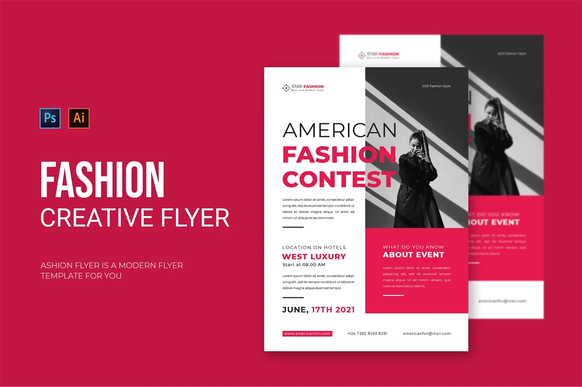 American Fashion - Flyer. This Flyer template is designed for your company's business needs. very clean and elegant, and also easily edited and adjusted to your liking