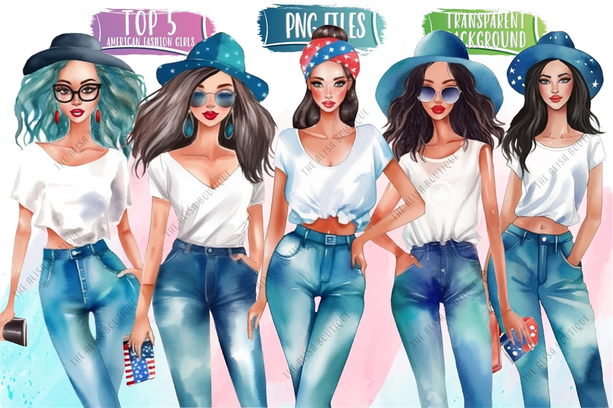 Discover a collection of stylish and trendy American Fashion Girl Clip Art. These PNG files are perfect for adding a touch of girl boss attitude and charm to your designs. From fashion illustrations to kawaii girl elements, this collection celebrates the spirit of girl boss fashion and captures the essence of girl power. Use these versatile clip arts for DIY projects, stationery, apparel, and more. Embrace your inner girl boss and let your creativity shine with these fabulous designs!
