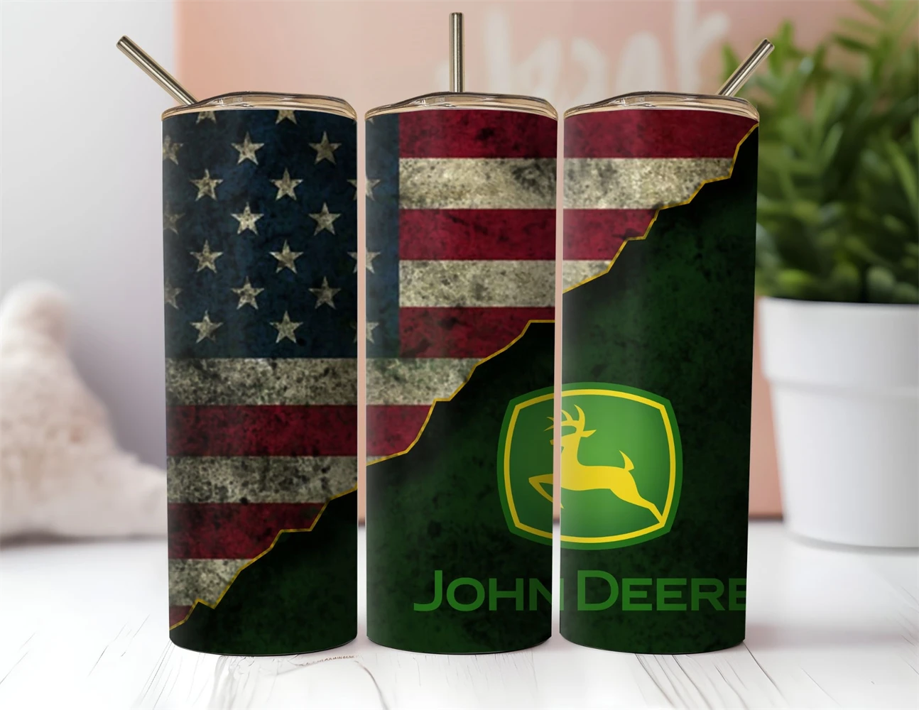 American Flag - John Deere Tumbler Wrap, 20oz Skinny Tumbler