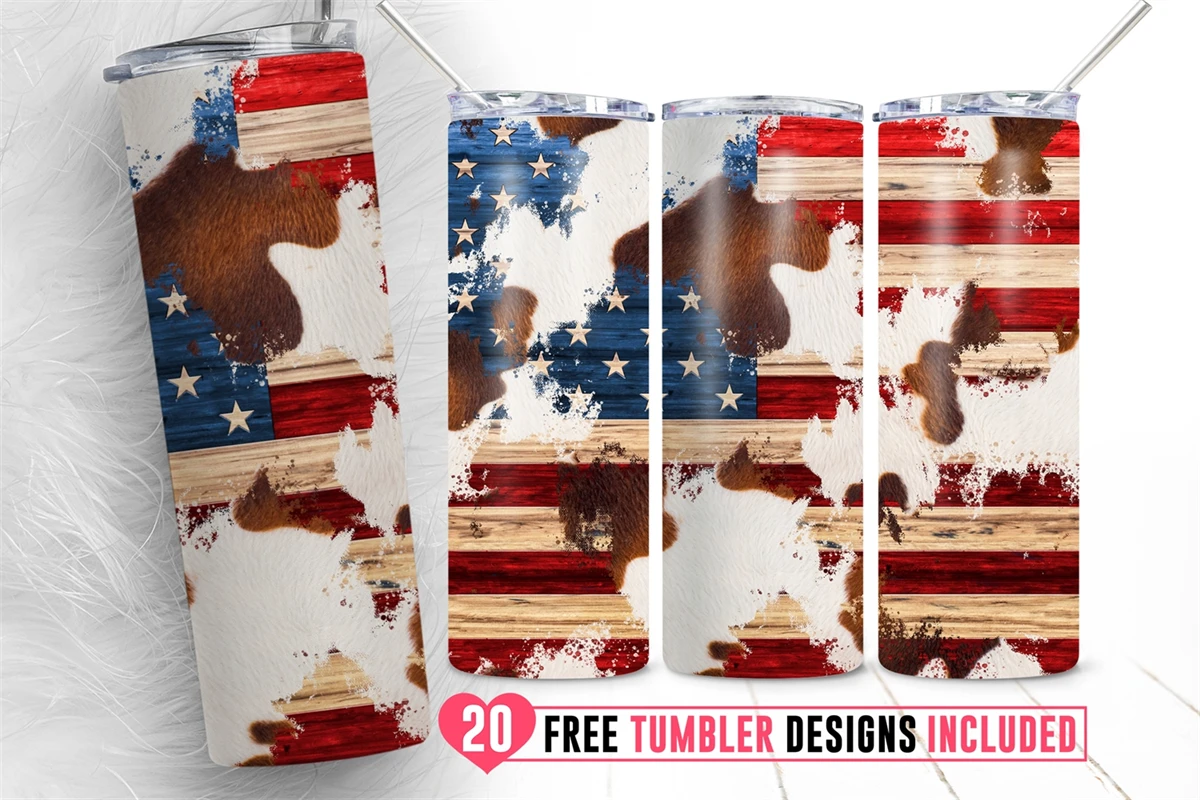 American Flag Cowhide Skinny Tumbler Usa Flag 4th of July