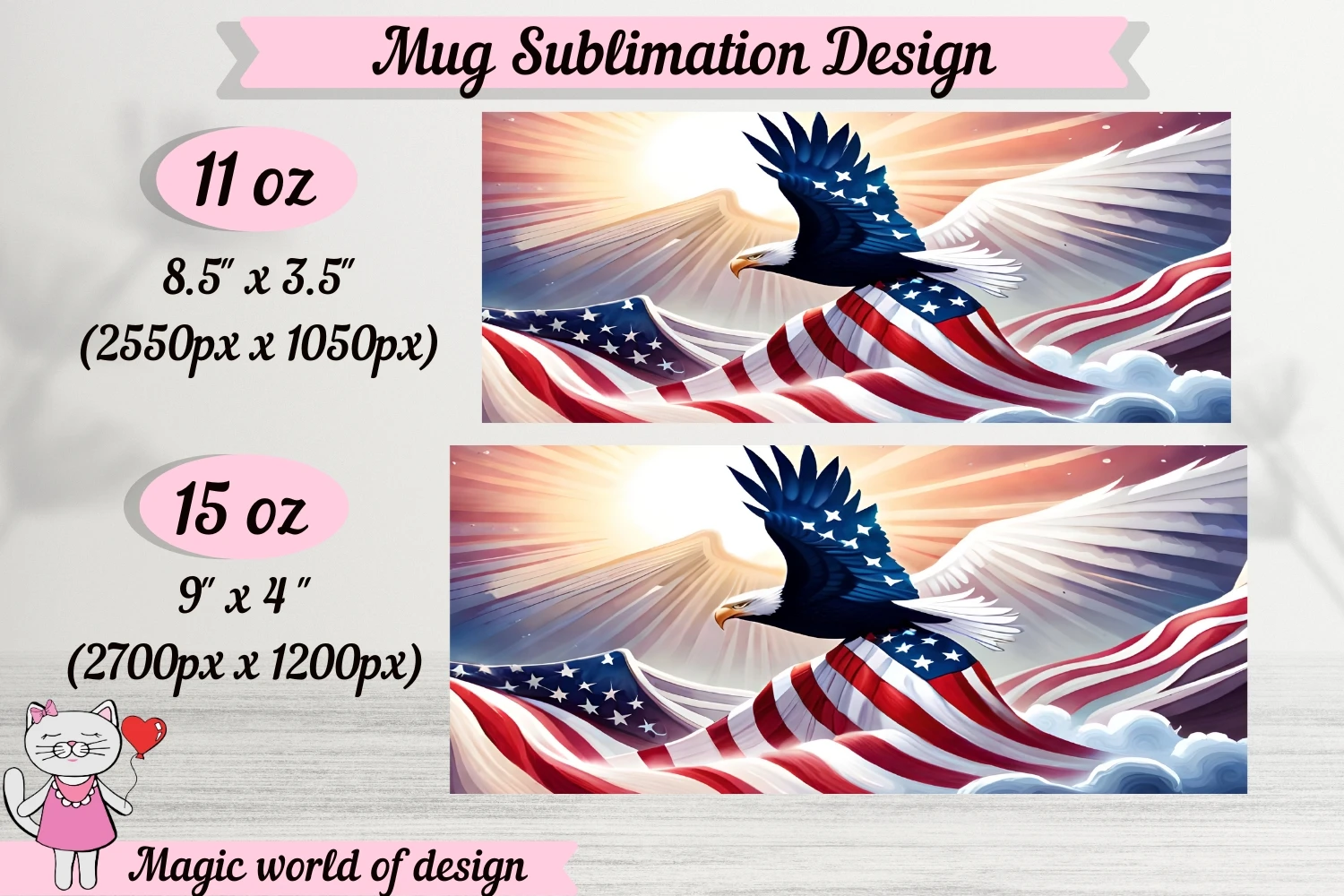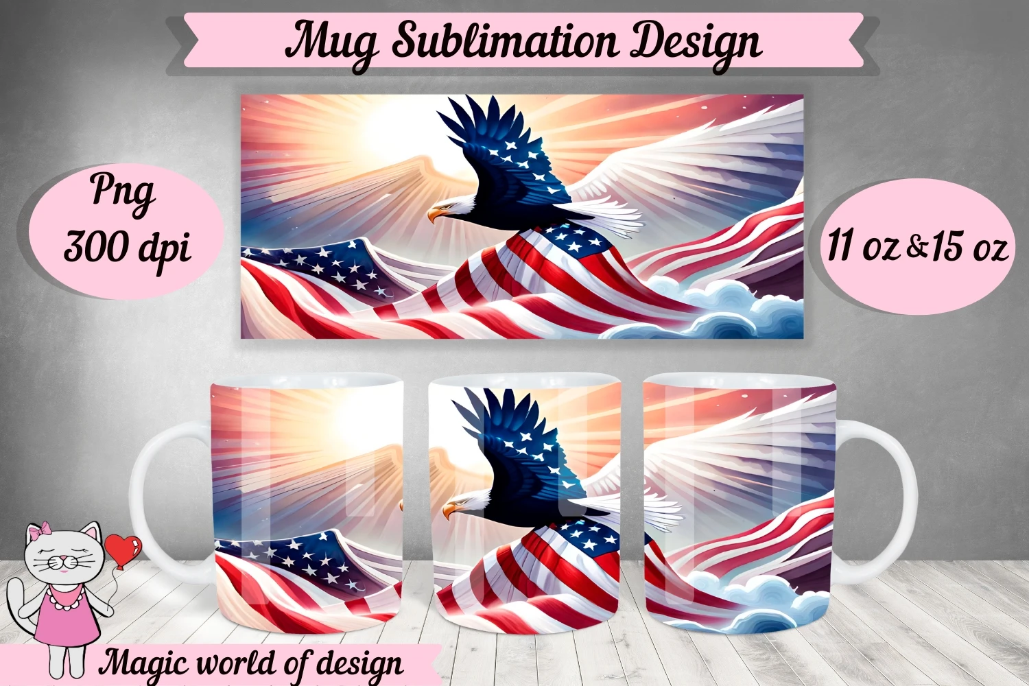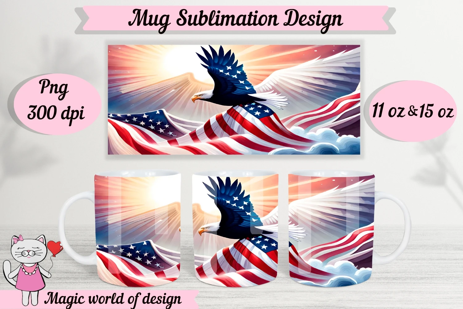 American flag Eagle Mug Sublimation Template PNG 11oz & 15oz