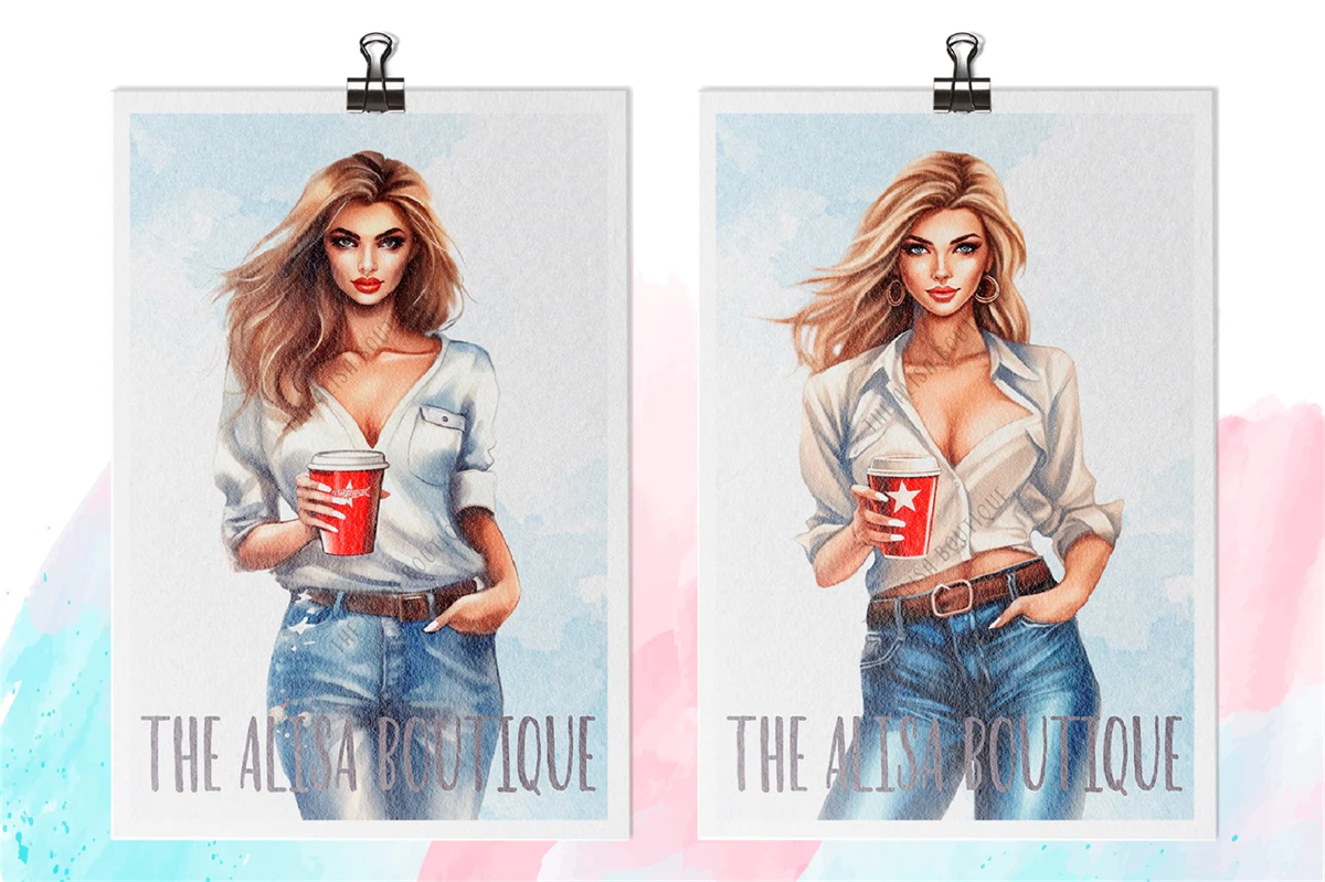 Get ready to elevate your designs with our American Girl Boss Coffee Clip Art collection! Embrace the spirit of independence and female empowerment with these adorable and versatile graphics. Perfect for 4th of July projects, kawaii-inspired designs, coffee enthusiasts, fashion lovers, and so much more. Add a touch of style and personality to your creations today!