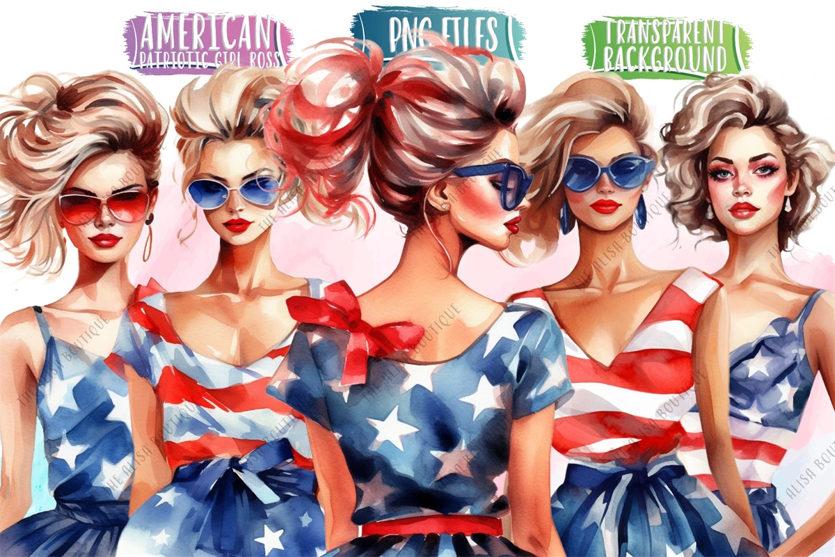 Discover our exclusive collection of American Patriotic Girl Boss Clip Art. These high-quality PNG files showcase the perfect fusion of girl boss fashion, boutique style, and patriotic themes. Embrace the empowering essence of the girl life fashion and embrace your chic side with these unique designs. Elevate your projects and unleash your creativity today!