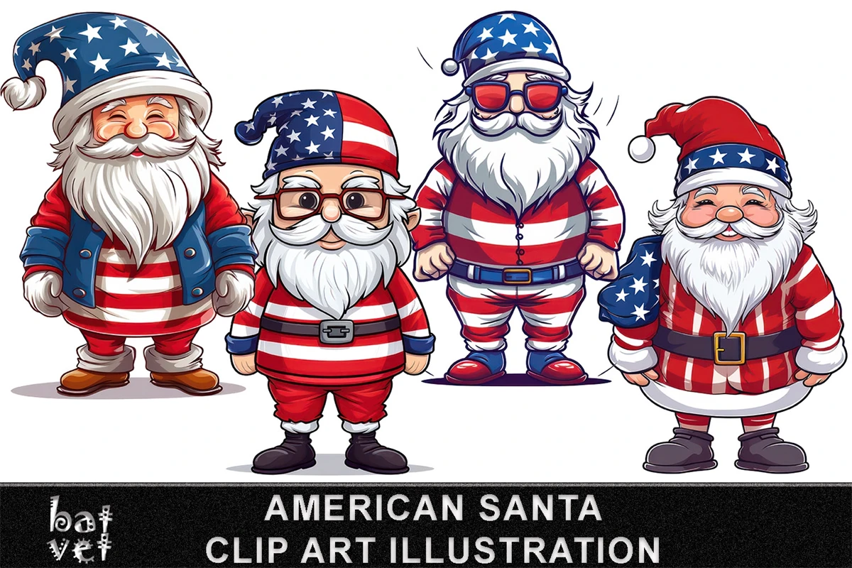 American Santa Clip Art / Patriotic Santa Illustration PNG