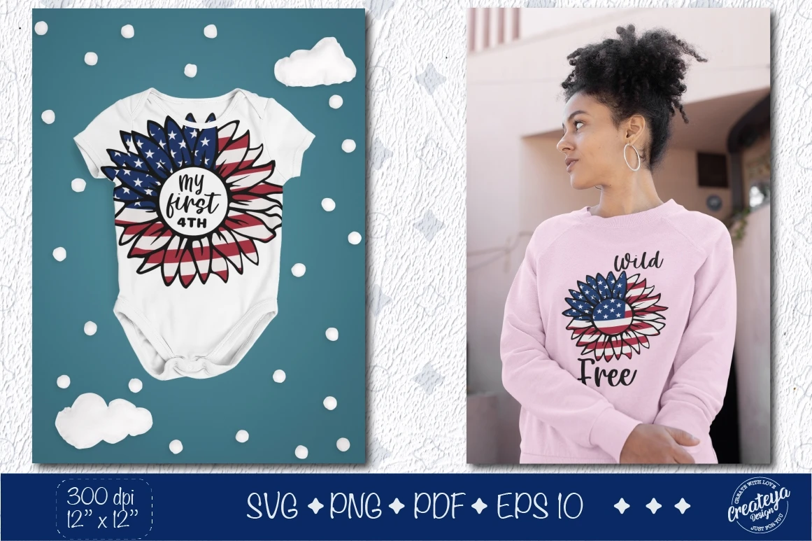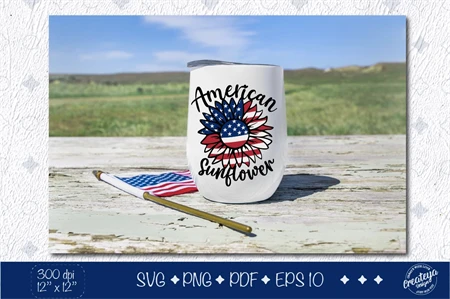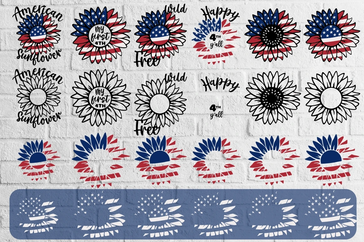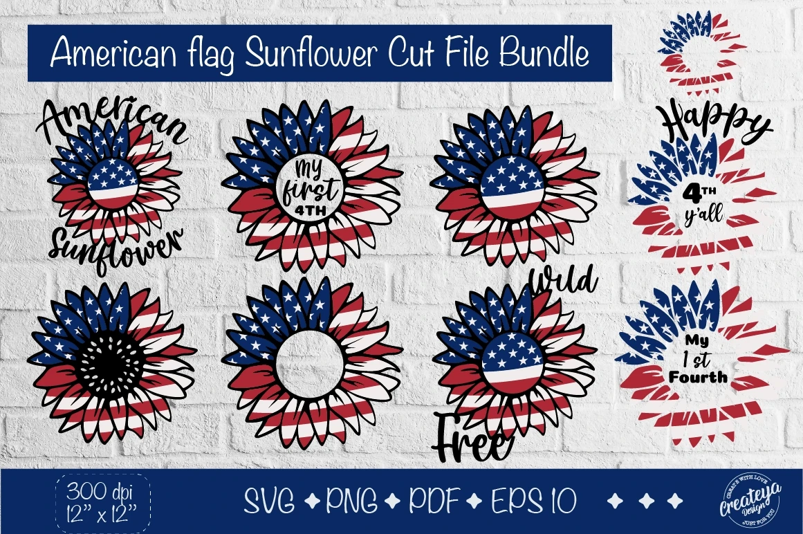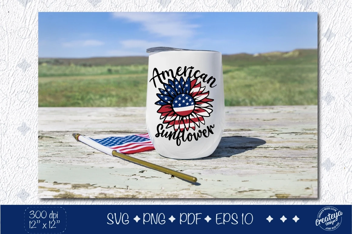 Patriotic svg bundle with Sunflower us flag svg and 4th of July sunflower is great for tumblers and mugs, t-shirts, bags, tote bag, cards, and many more products.