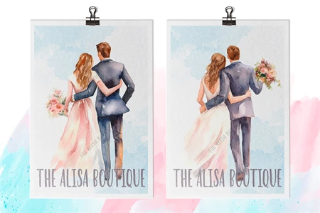 Discover our stunning American Wedding Couple Clip Art! This boutique fashion style design captures the essence of love and romance, perfect for expressing the bond between boyfriend and girlfriend, soulmates, and couples. With its 4th of July theme, it adds a touch of American patriotism to any project. Ideal for postcards, phone mockup cases, DIY crafts, and more!