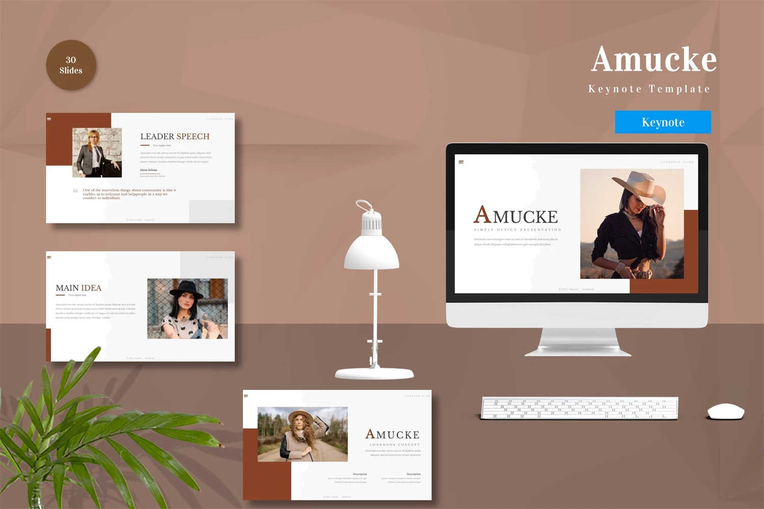 Get it now! **Amucke - Keynote Template** for All Business and Personal Needs All elements on this template are editable; input your content, replace your image with a placeholder, change the color, and all presentations include an animated slide to present your slides.