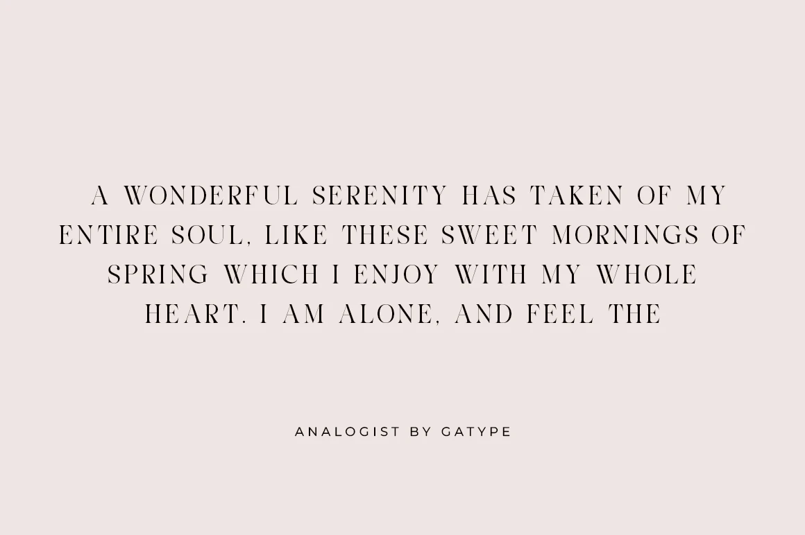 Analogist is a modern display font with a unique font. This customizable font will look great on a variety of design ideas such as, inding styles, high contrast and light weight fonts perfect for feminine logo signs, fashion & editorial design heads, branding projects, Clothing Branding, packaging, magazine titles, advertisements, T -shirts, postcards, valentines, posters, invitations, weddings, branding projects, social media posts, magazines, book covers and more! This will add a fun and friendly touch to any of your projects! This font is PUA encoded which means you can access all the glyphs and sweeps easily and more.