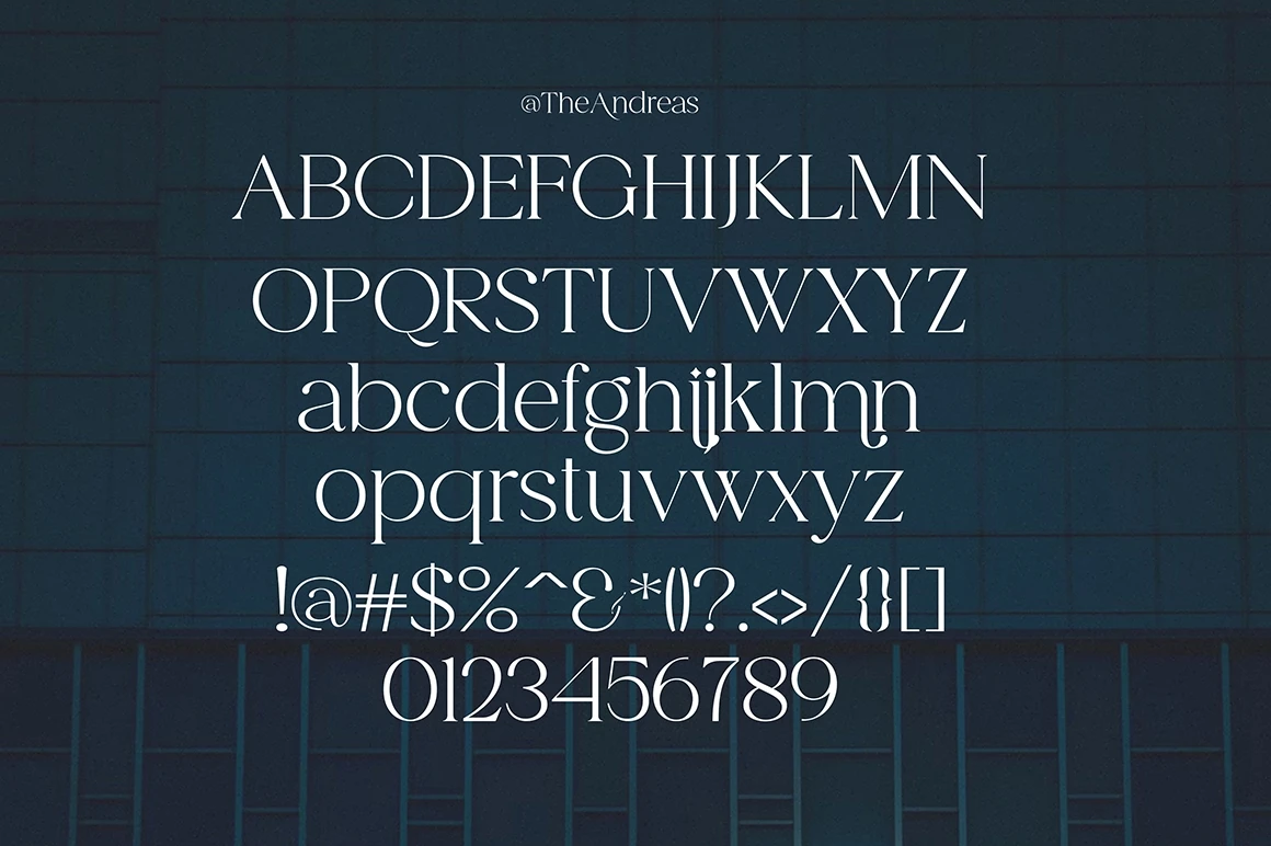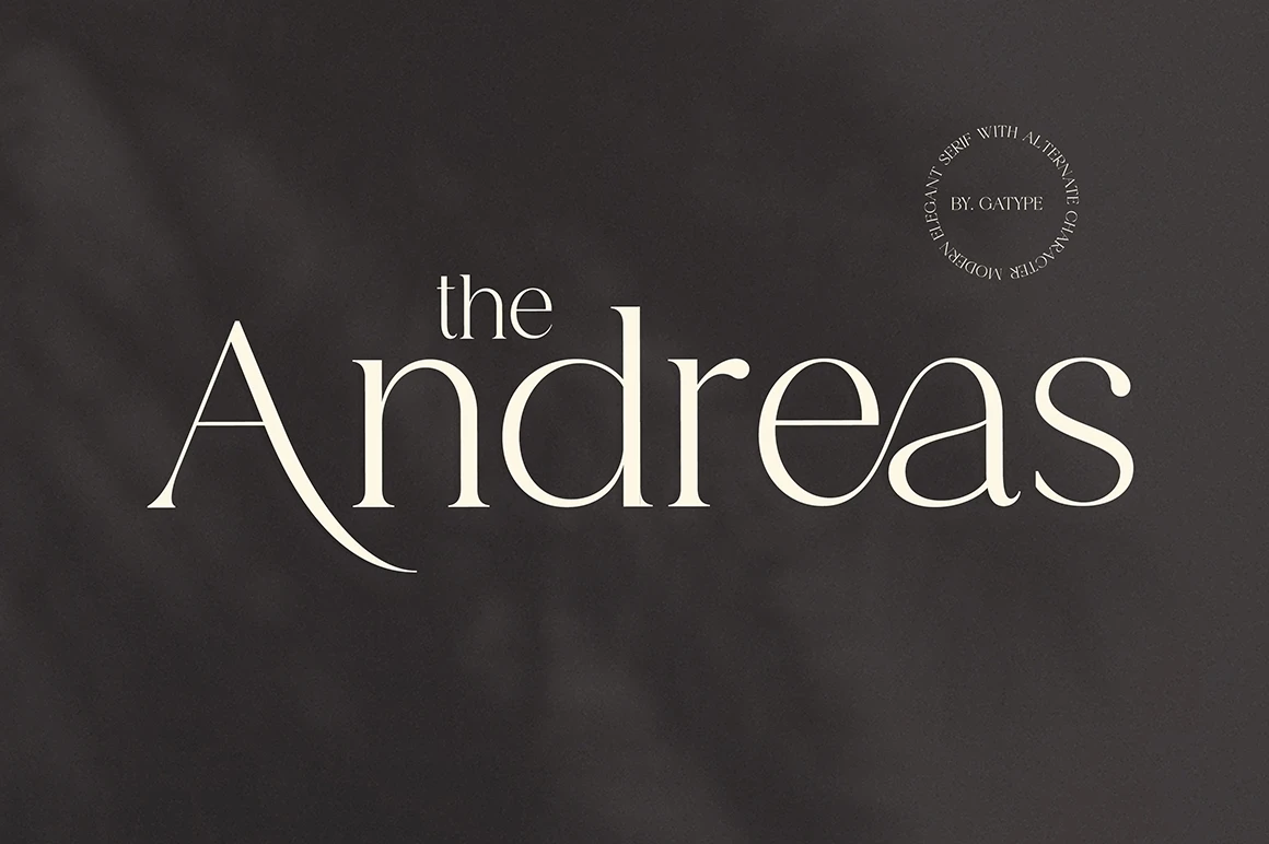The Andreas font is perfect for branding, poster design, t-shirts, invitations, designs for kids, and editorial design. It comes with over 400 glyphs, including ligatures. OpenType features include style sets, character variants, starting and ending forms, and multilingual support.
