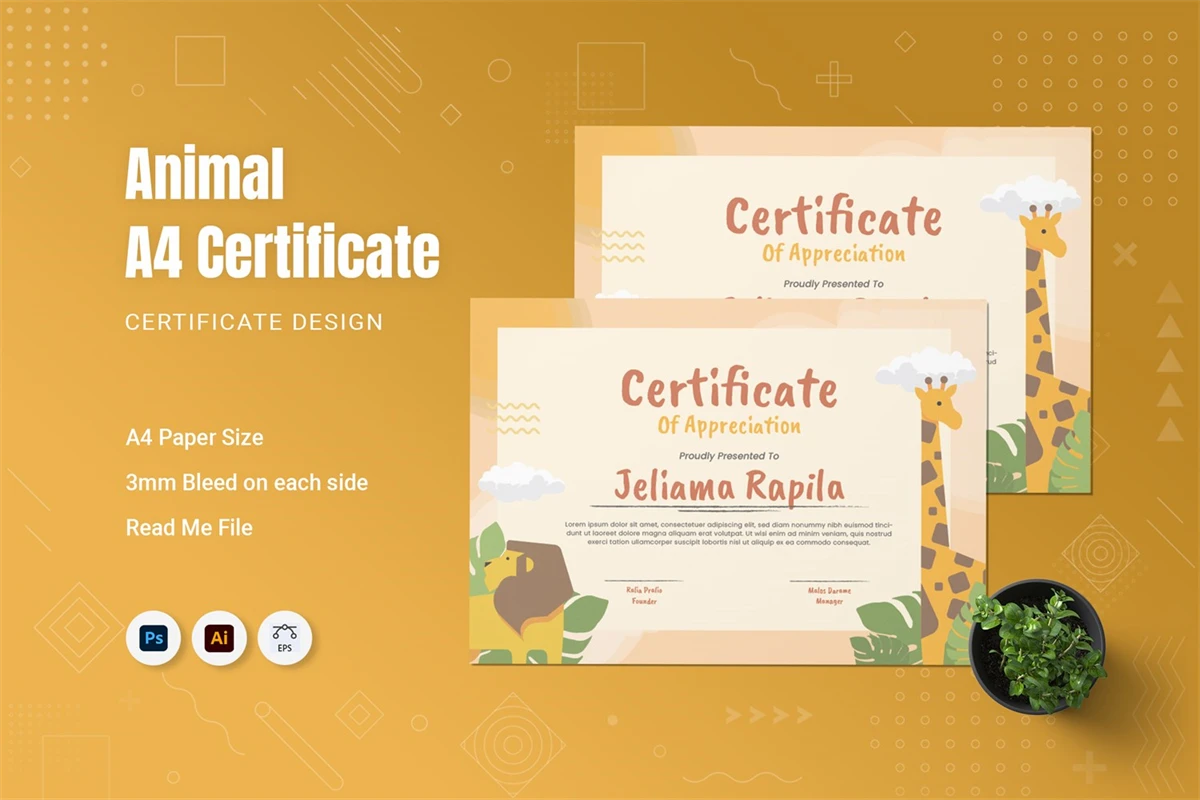 This certificate template can be used for a variety of different purposes in the realms of business, education, fashion, photography, food, lifestyle, architecture, and so on. You dont need to create them from scratch; it's time-consuming. It is completely customizable to suit your brand's colors and corporate fonts.
