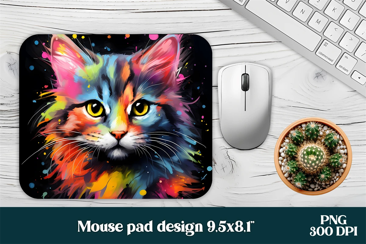 Animal mouse pad wrap, rainbow cat mousepad PNG