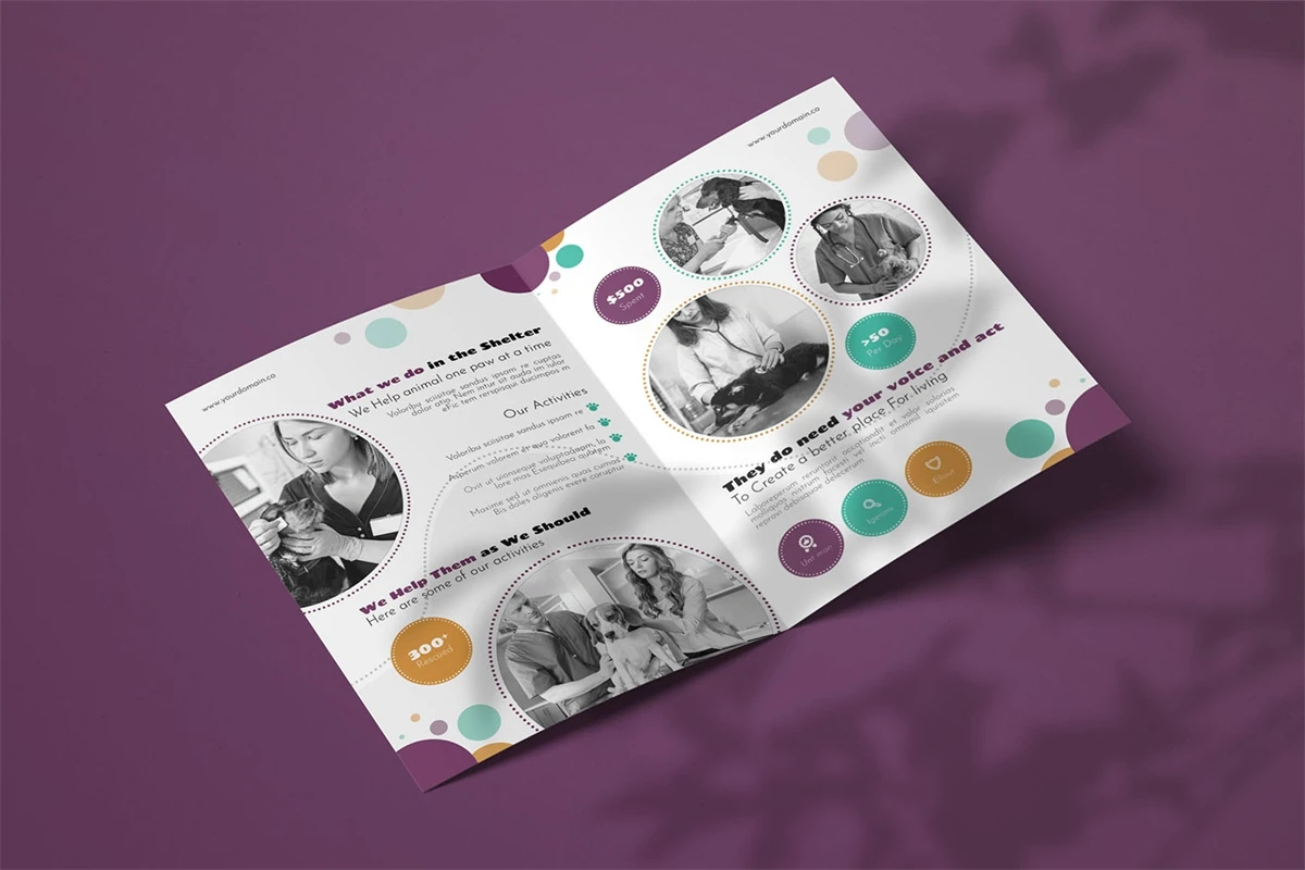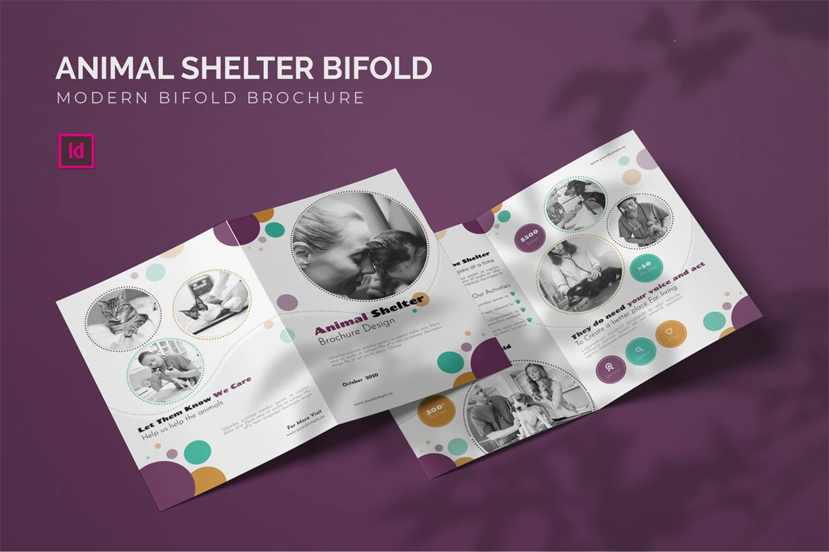 Animal Shelter - Bifold Brochure We present this Bifold Brochure for you, simple and very elegant, and this Bifold Brochure is suitable for all types of your business, made with adobe inDesign, very easy to customize, Hope you Like it, dont forget to rate, Thanks.