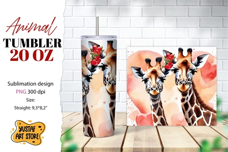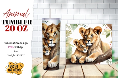 Animal tumbler 20 oz sublimation. Cute Mom and Baby capybara AI illustration watercolor design