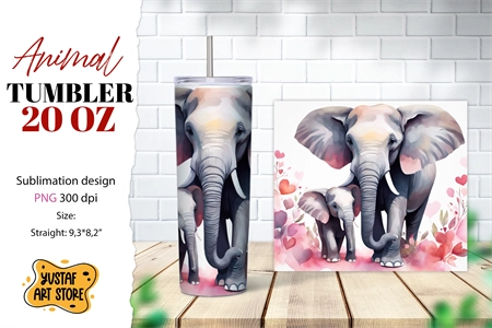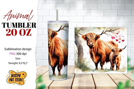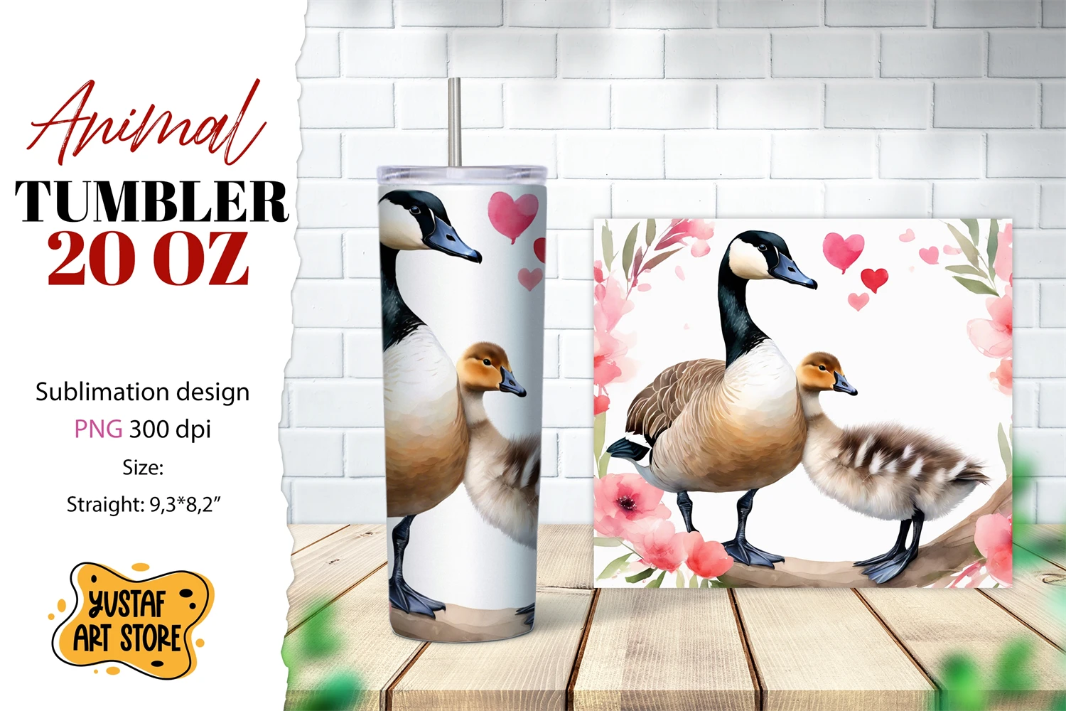 Animal tumbler 20 oz sublimation. Cute Mom and Baby goose AI illustration watercolor design