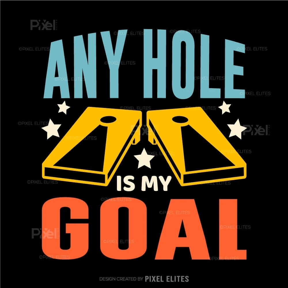 - Fun and Catchy Design: The phrase Any Hole Is My Goal paired with cornhole graphics brings humor and personality to your project, perfect for casual players and serious competitors alike.