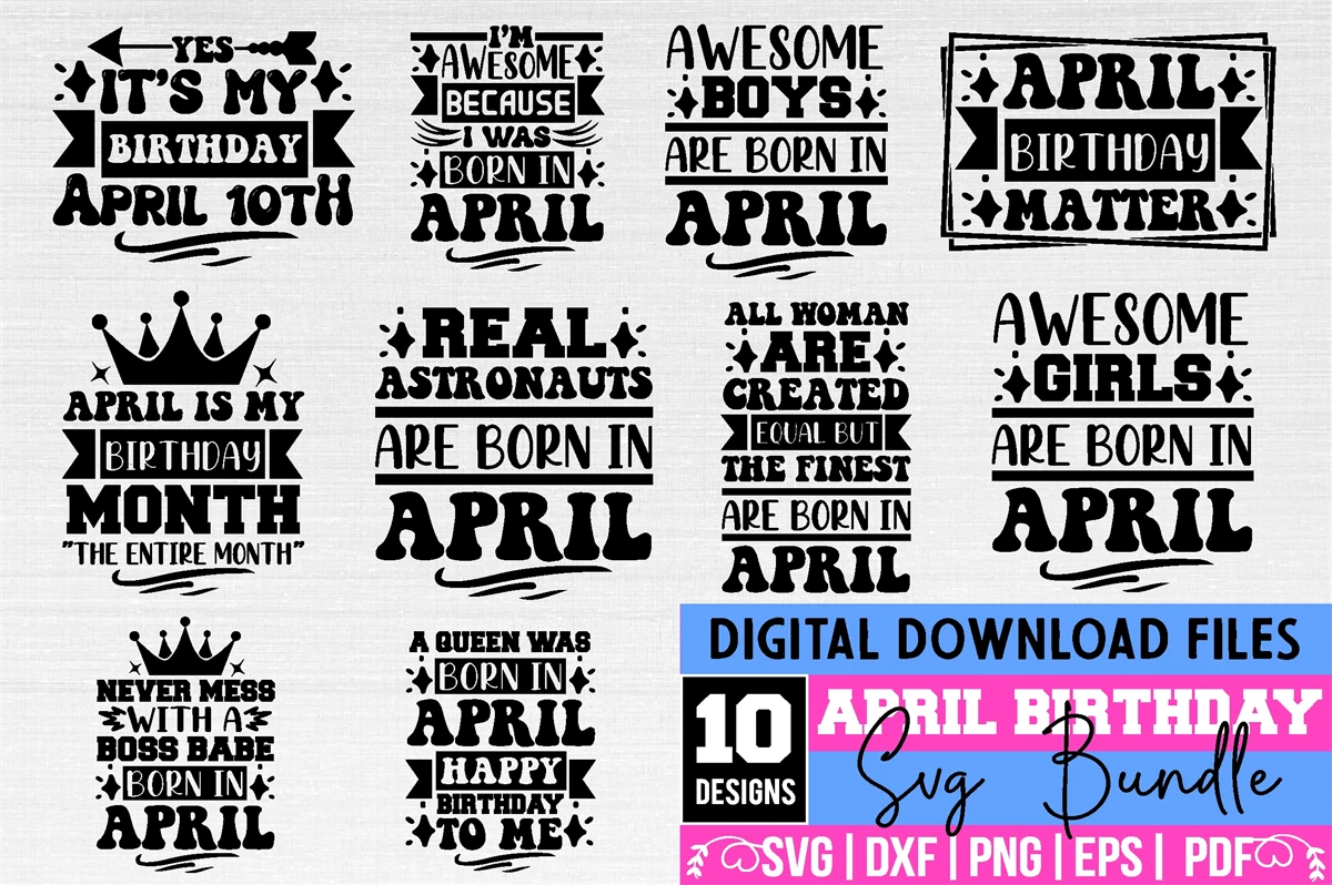 april birthday svg design bundle.