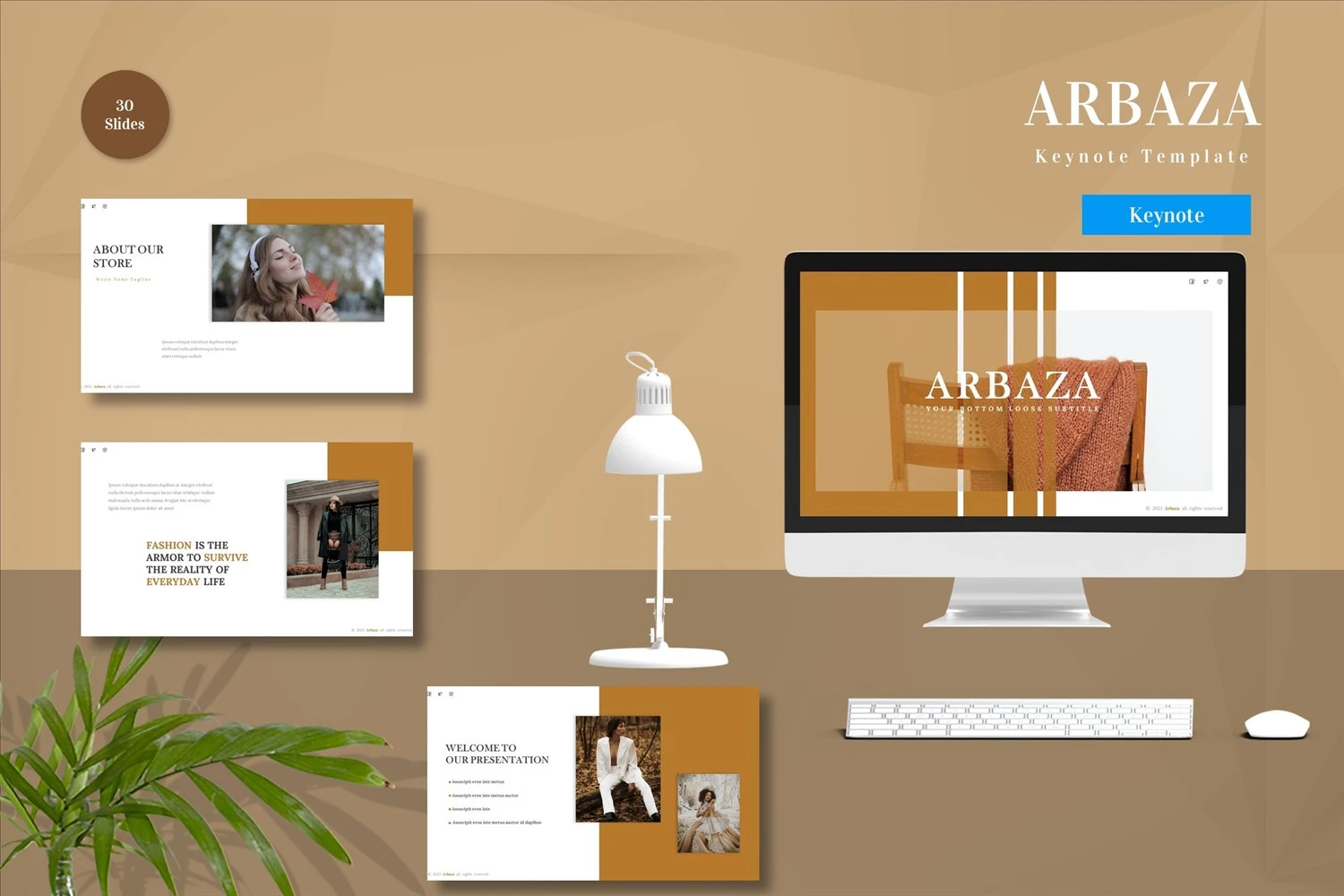 Get it now! **Arbaza - Keynote Template** for All Business and Personal Needs All elements on this template are editable; input your content, replace your image with a placeholder, change the color, and all presentations include an animated slide to present your slides.