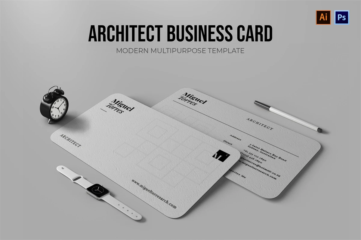 This Architect - Business Card make your business cards look professional. You can use this business card for, identity, company business cards, Corporate Business, Creative, Blogs, Photographers, Artists, Designers, etc.