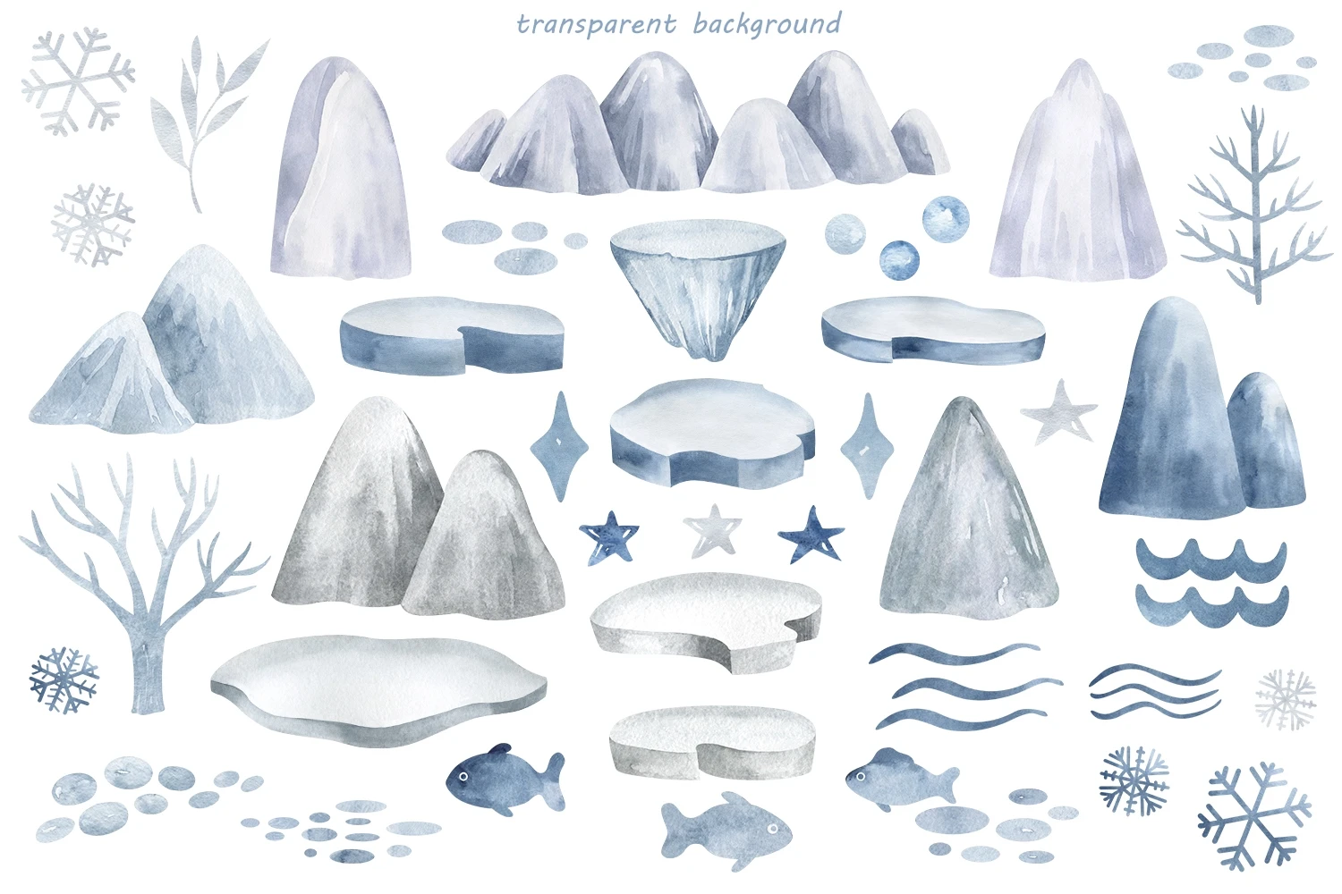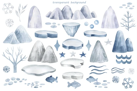 - 43 individual winter elements. (PNG 600 dpi. Transparent background.)