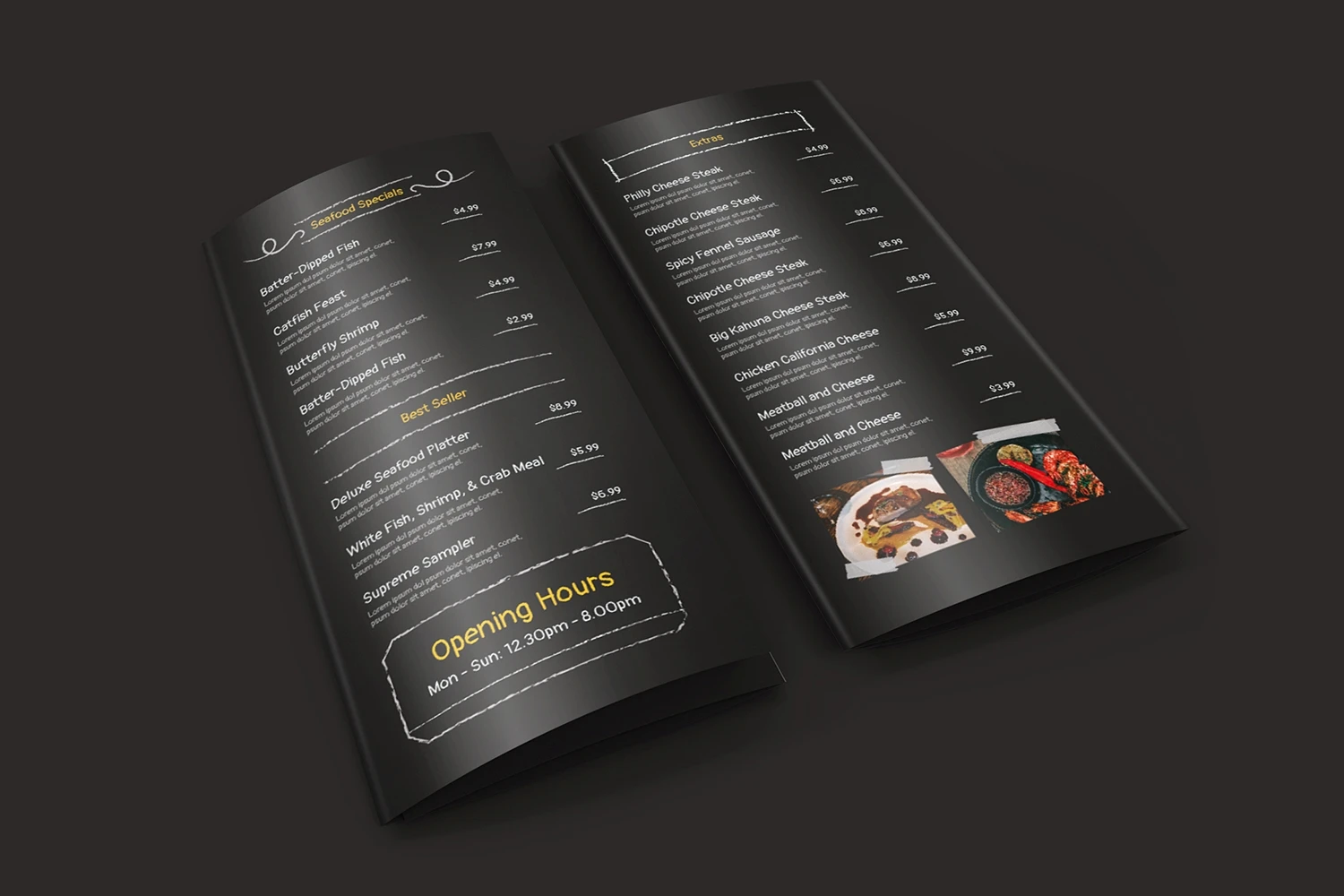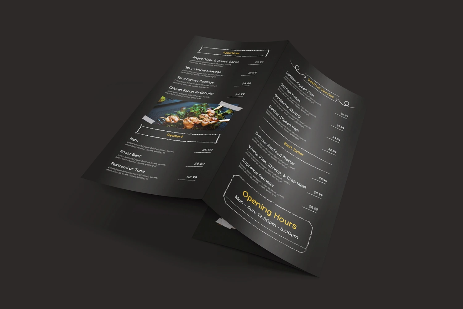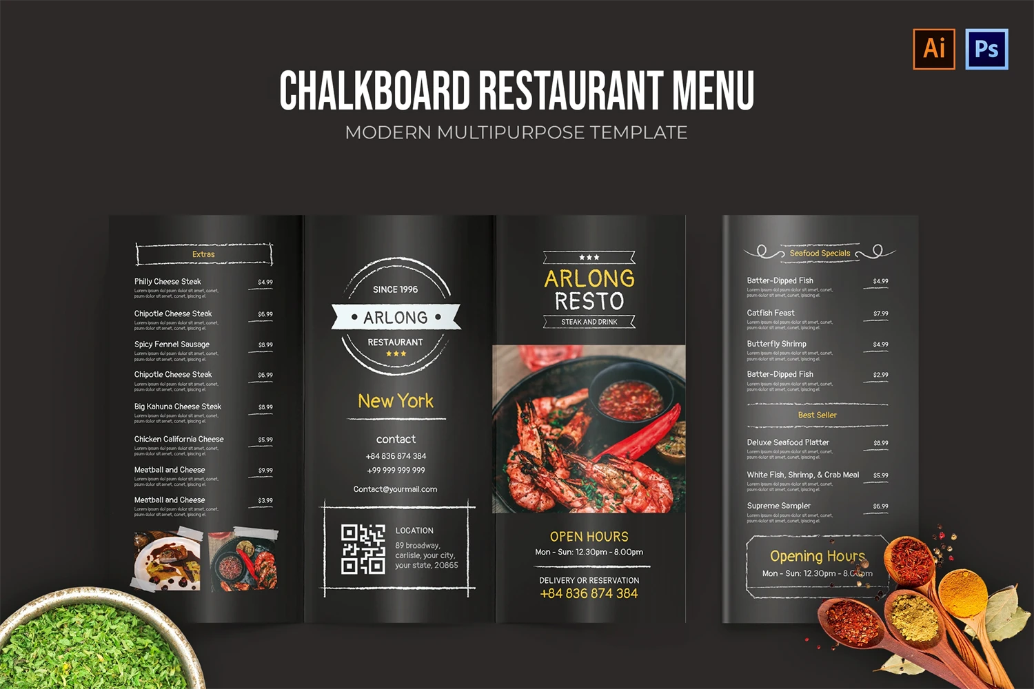 Arlong Chalkboard - Restaurant Menu. This template is great for your business and will make your customers interested, elegant, and easily editable according to your needs, this restaurant menu is perfect for, promos, cafes, hotels, resort shops online. etc. I hope you enjoy this restaurant menu