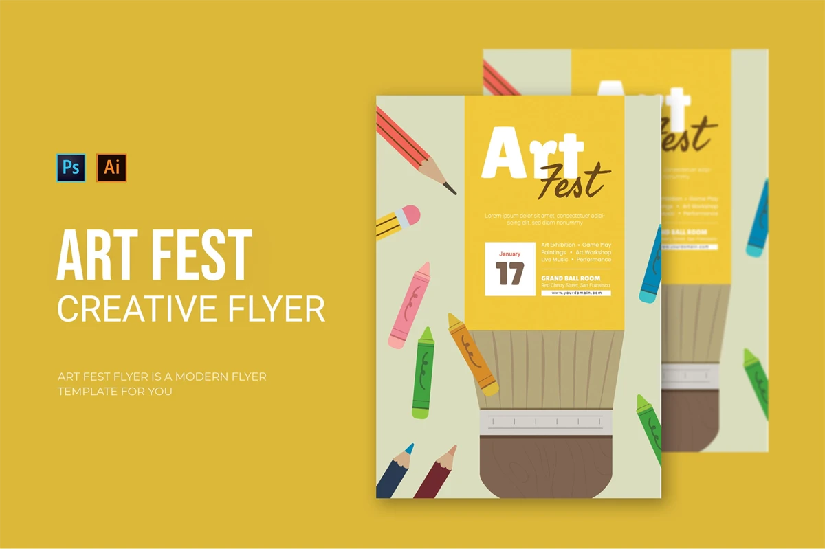Art Fest - Flyer. This Flyer template is designed for your company's business needs. very clean and elegant, and also easily edited and adjusted to your liking