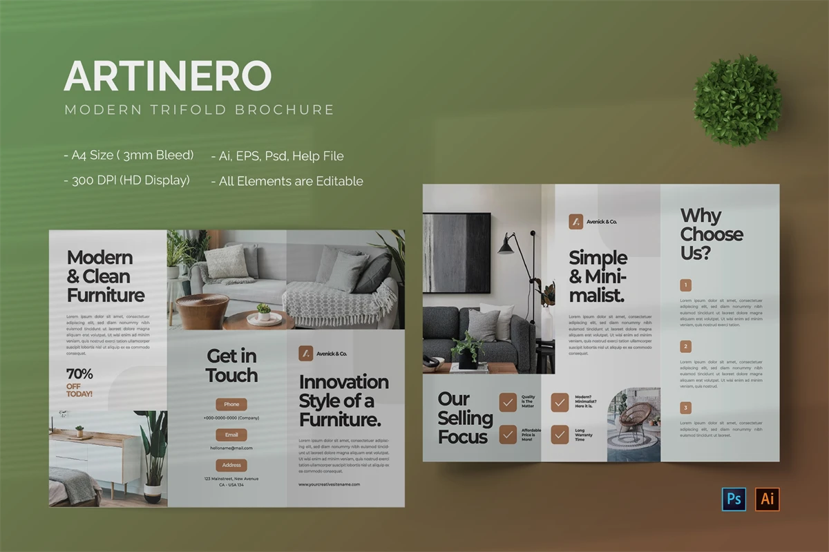 This type of brochure is split into three equal parts to make three panels when information about your brand can be displayed. Use this template because it's easy to edit!