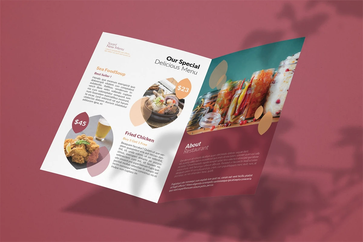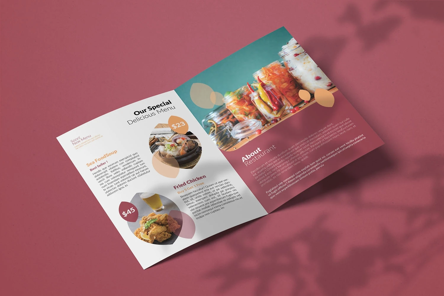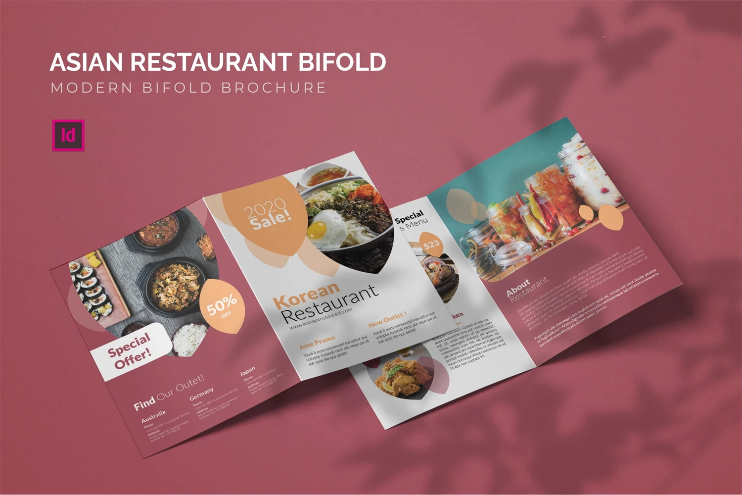 Asian Restaurant - Bifold Brochure We present this Bifold Brochure for you, simple and very elegant, and this Bifold Brochure is suitable for all types of your business, made with adobe inDesign, very easy to customize, Hope you Like it, dont forget to rate, Thanks.