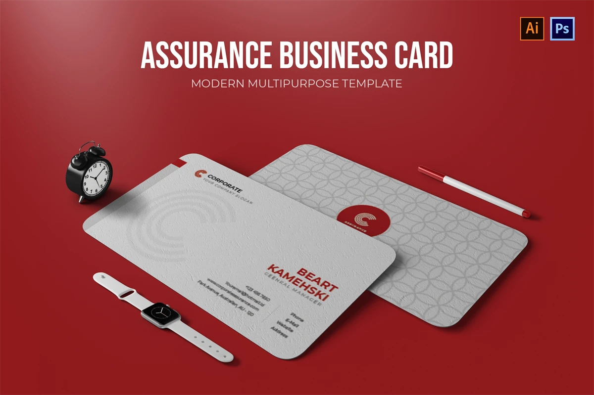 This Assurance - Business Card make your business cards look professional. You can use this business card for, identity, company business cards, Corporate Business, Creative, Blogs, Photographers, Artists, Designers, etc.