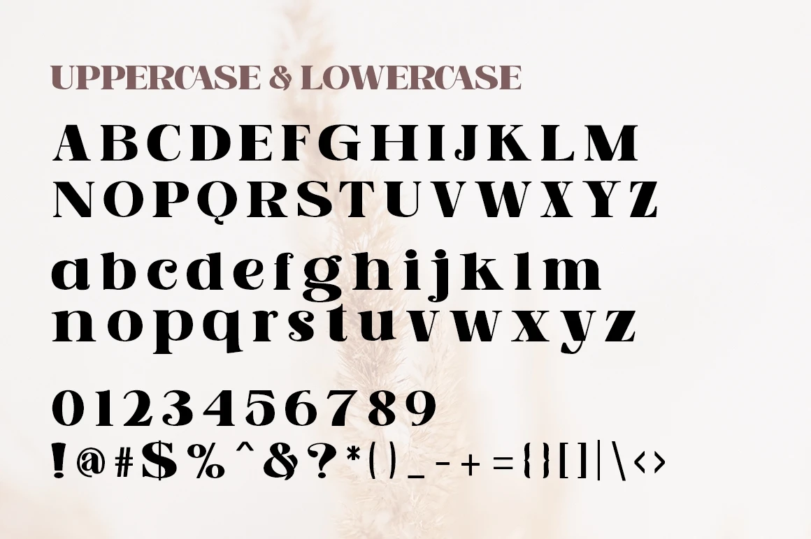 ASTERU An elegant font designed when in a creative mood and perfect shape, inspired by the bold, natural look of serifs so beautiful for today's fashion. bold, balanced and varied, born for luxury and beauty. including uppercase letters, numbers, and various kinds of punctuation ASTERU is perfect for invitations, logos & branding, photography, advertising, watermarks, social media posts, product packaging, product designs, labels, wedding designs, stationery, special events or anything else needed to create a theme.