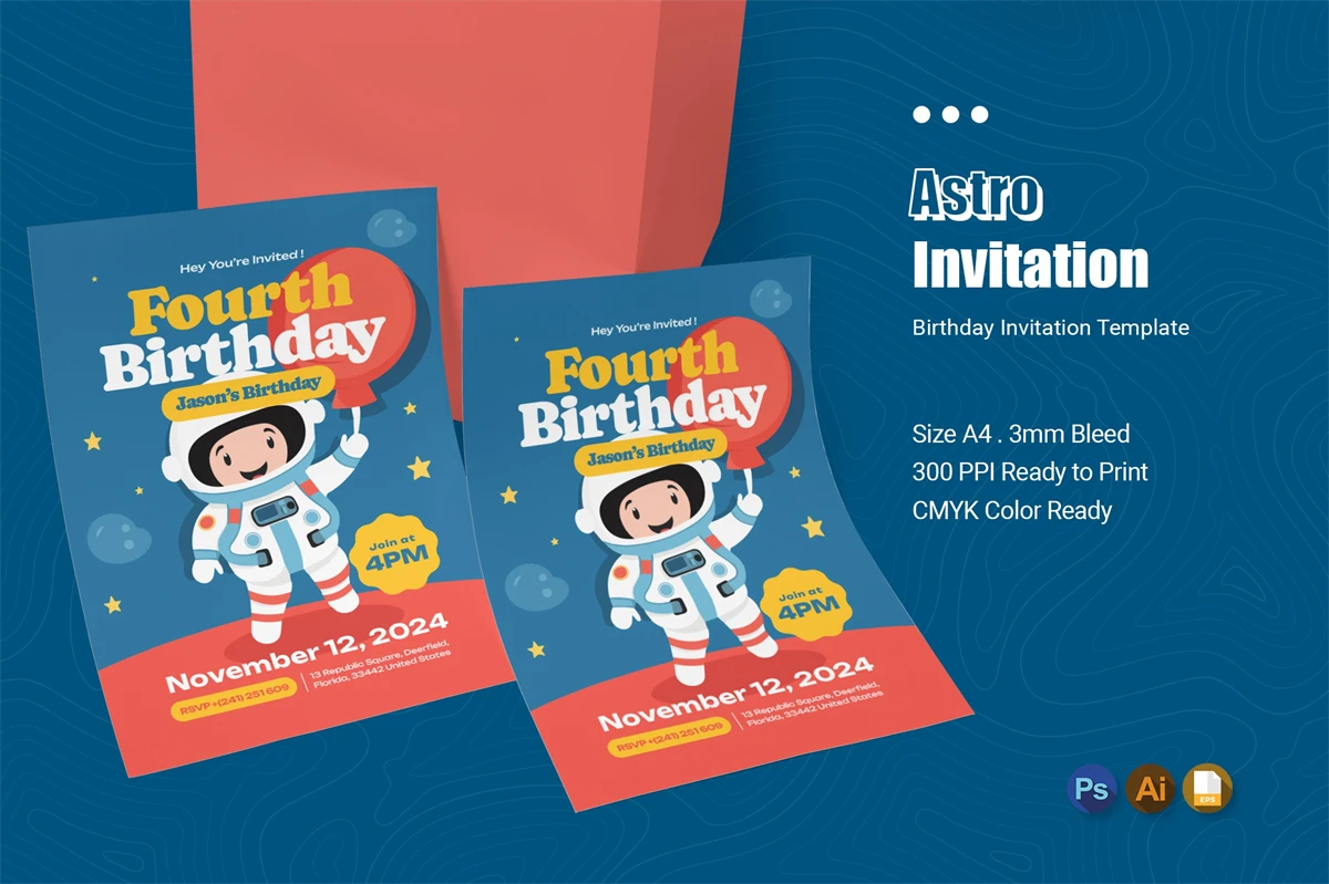 Of course you want to invite friends to your birthday party with the best invitations! Impress the invited guests with your style of invitation, by using this invitation card template. You can easily edit & customize each of the designs because every component is well organized and editable.