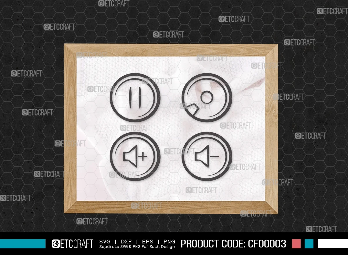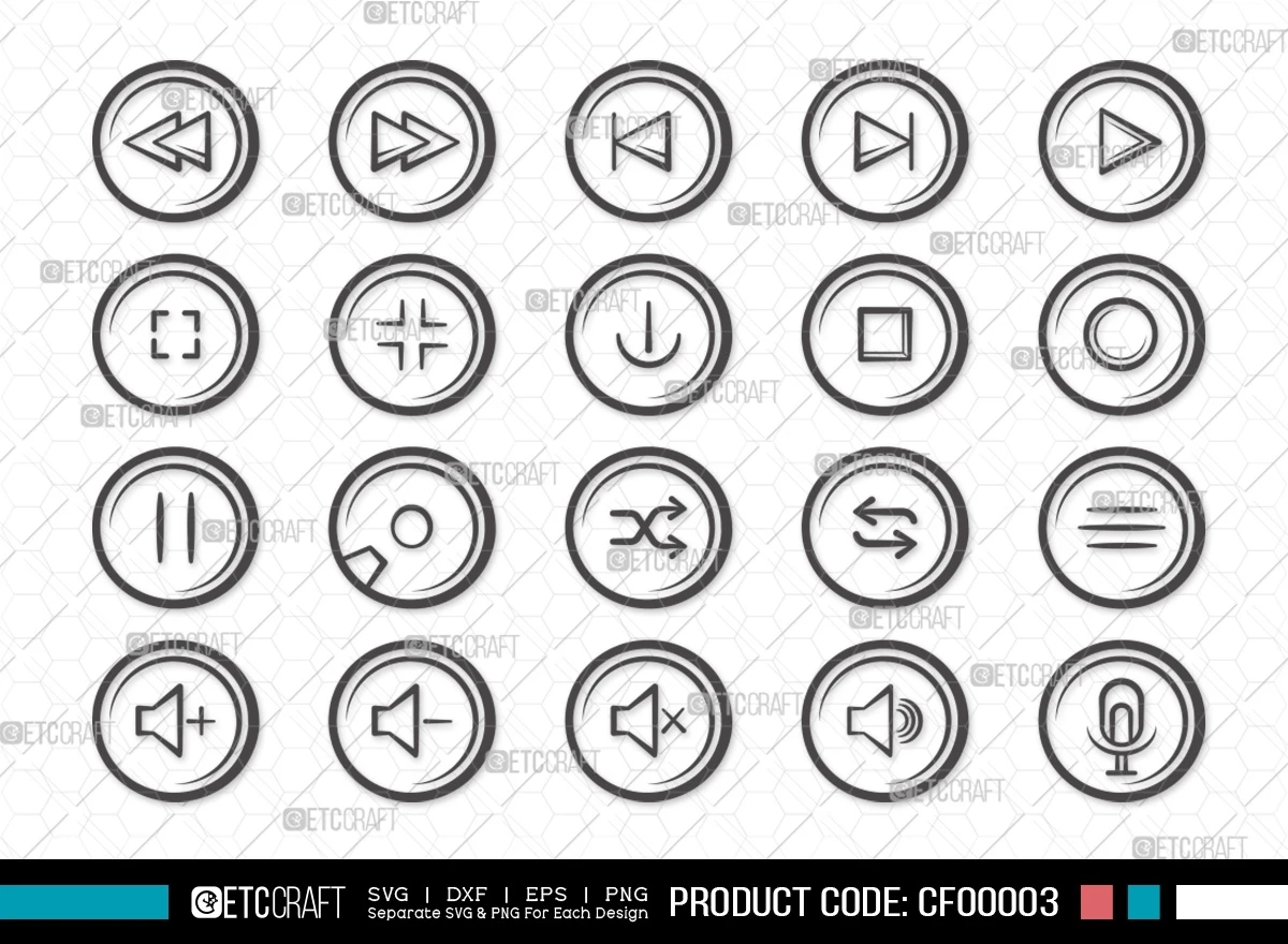 Elevate your audio projects with our Audio Control Buttons SVG Bundle – a dynamic collection designed to enhance your creative process. This comprehensive bundle includes meticulously crafted SVG, DXF, EPS, and PNG files, providing you with the tools you need for seamless integration into your designs.