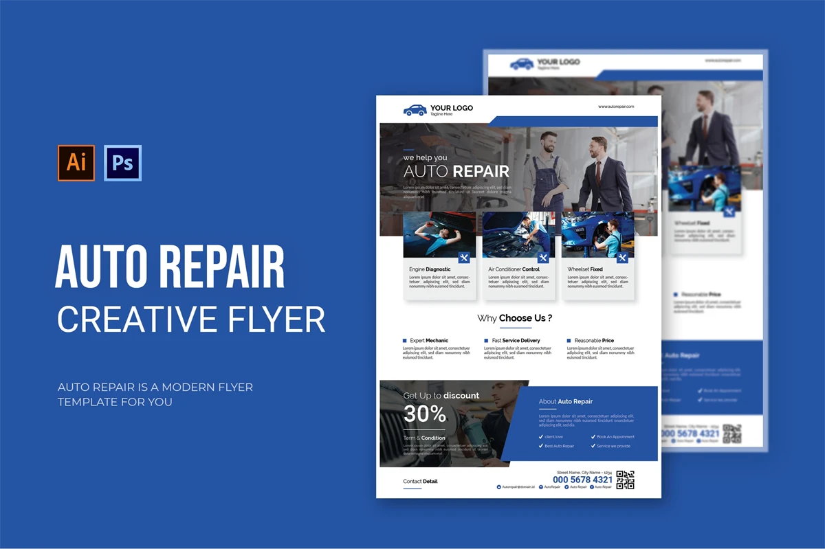 Auto Repair - Flyer. This Flyer template is designed for your company's business needs. very clean and elegant, and also easily edited and adjusted to your liking