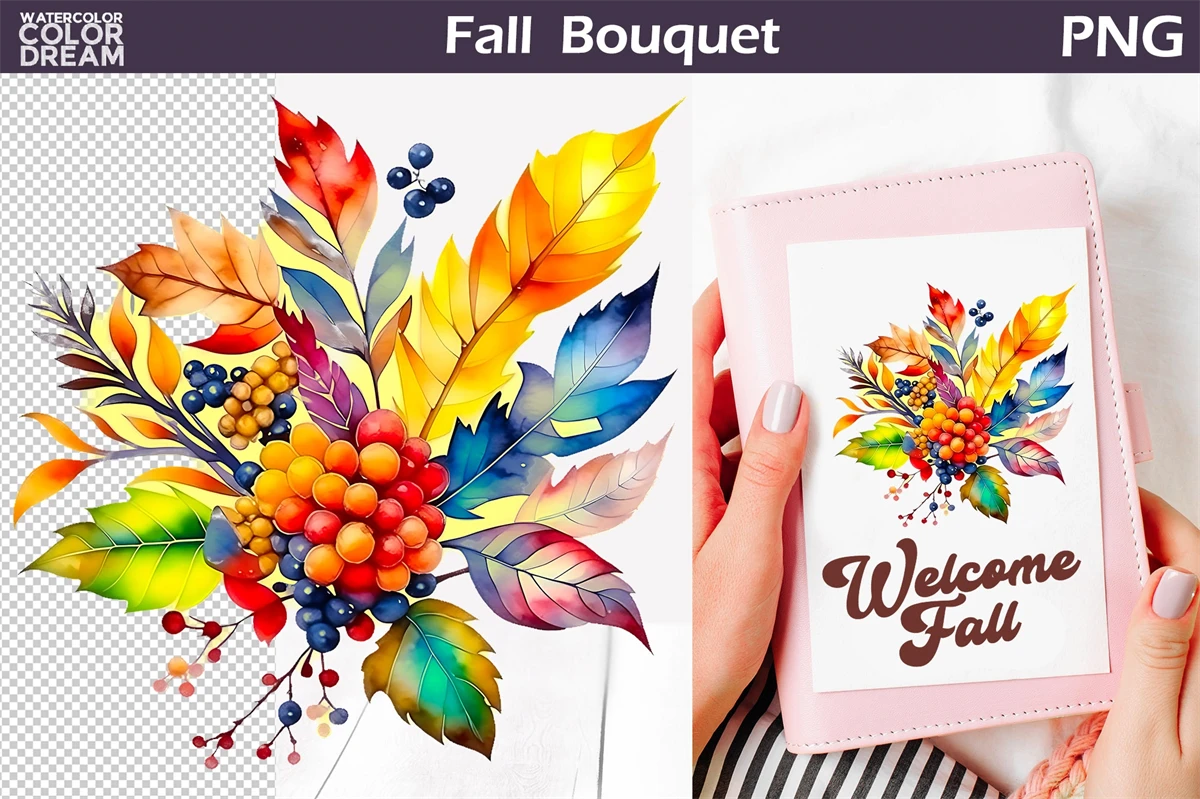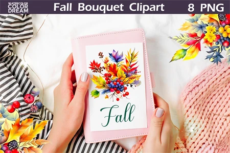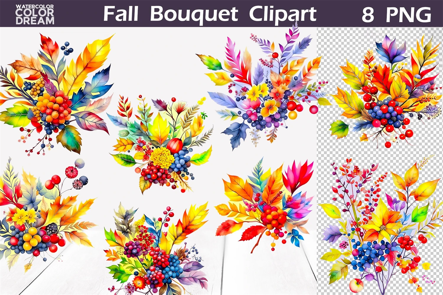 Autumn Branches Leaves Clipart. Fall Bouquet Clipart