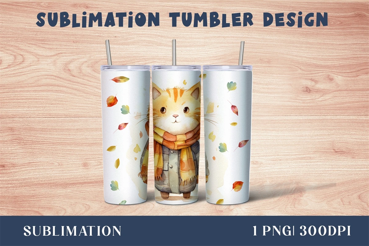 Watercolor Cute cat Tumbler Wrap 20 oz