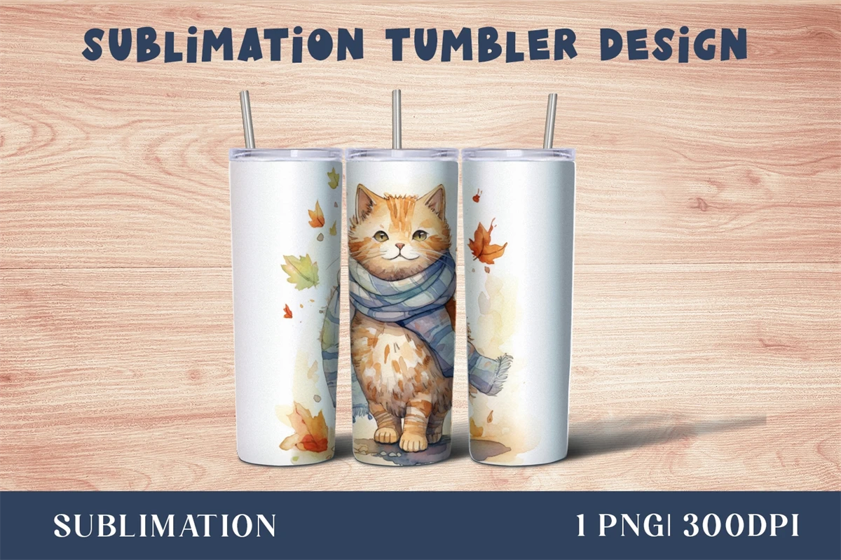 Autumn cat tumbler wrap Sublimation - 20oz