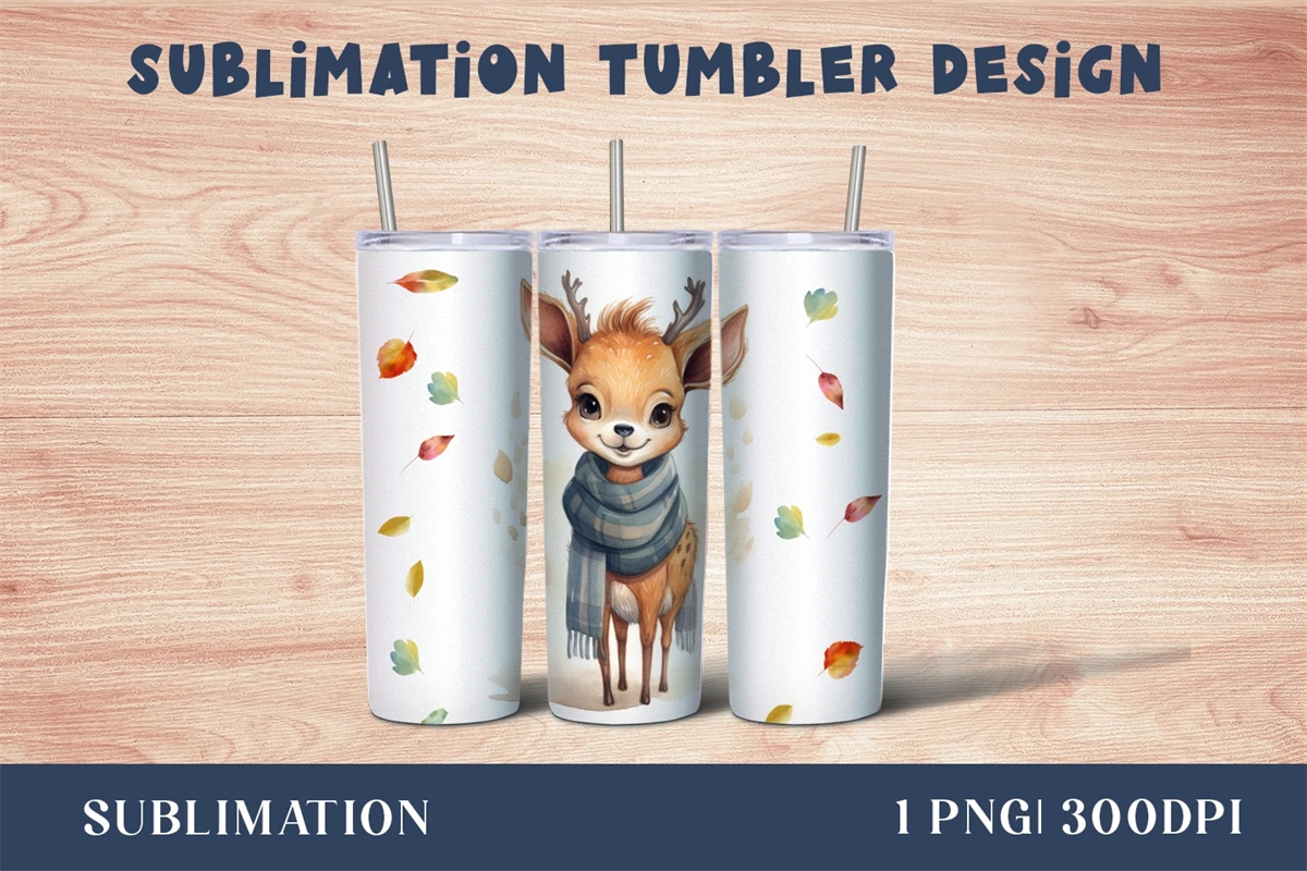 Watercolor Cute deer Tumbler Wrap 20 oz