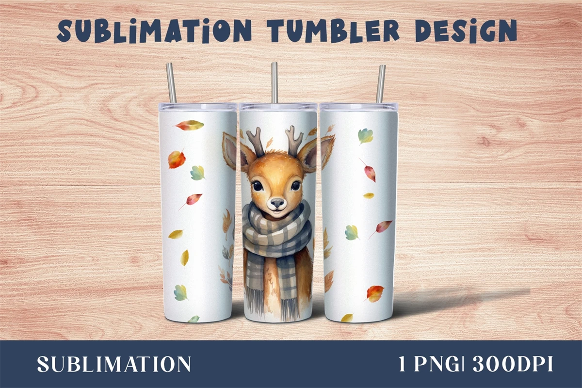 Watercolor Cute deer Tumbler Wrap 20 oz