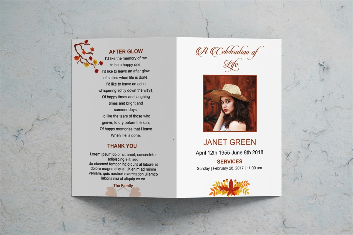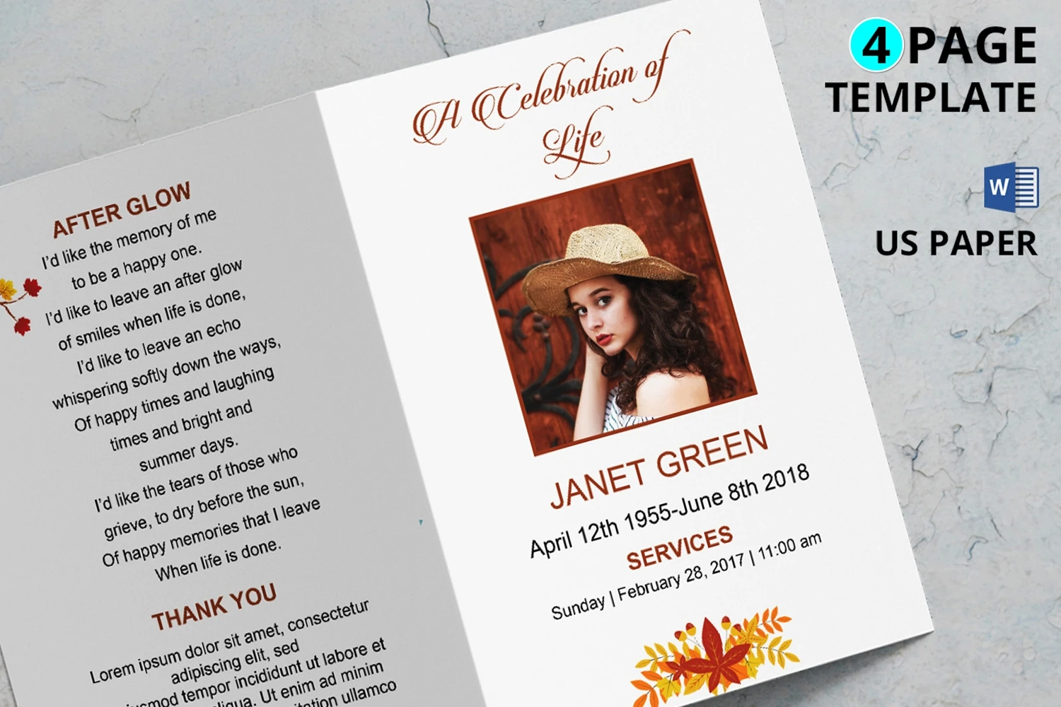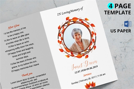 8.5x11 Inches Word, Publisher and CANVA Funeral Program Template.