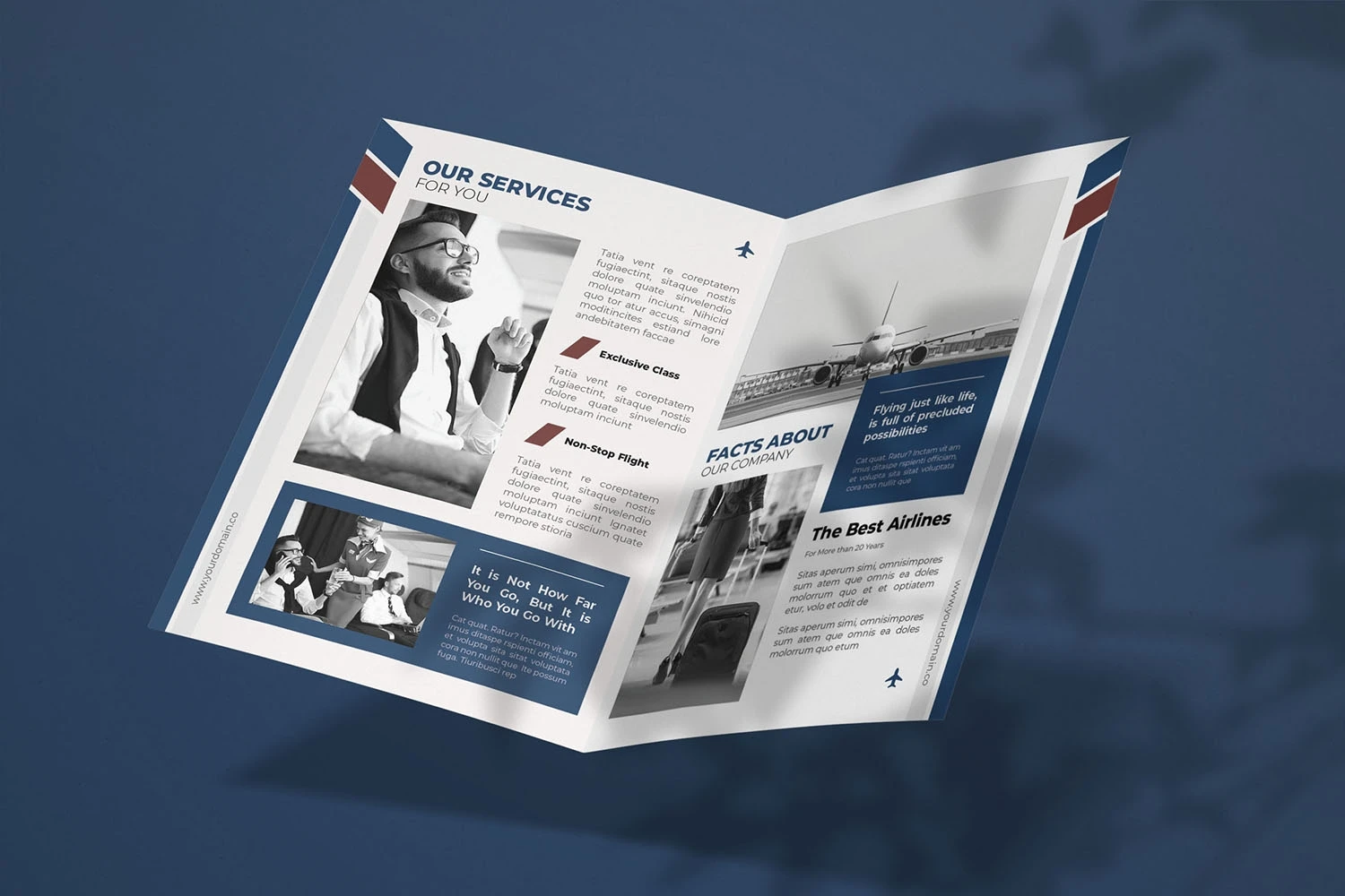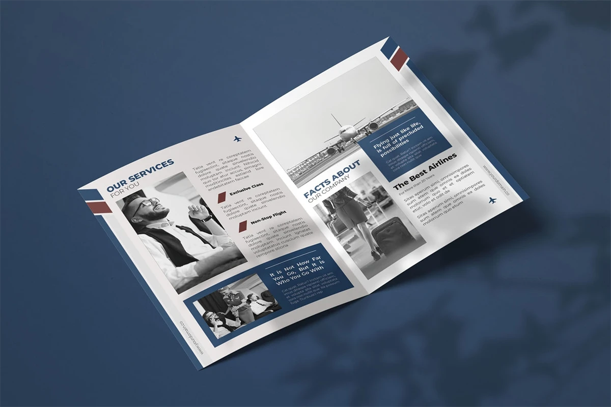 Aviation Industry - Bifold Brochure We present this Bifold Brochure for you, simple and very elegant, and this Bifold Brochure is suitable for all types of your business, made with adobe inDesign, very easy to customize, Hope you Like it, dont forget to rate, Thanks.