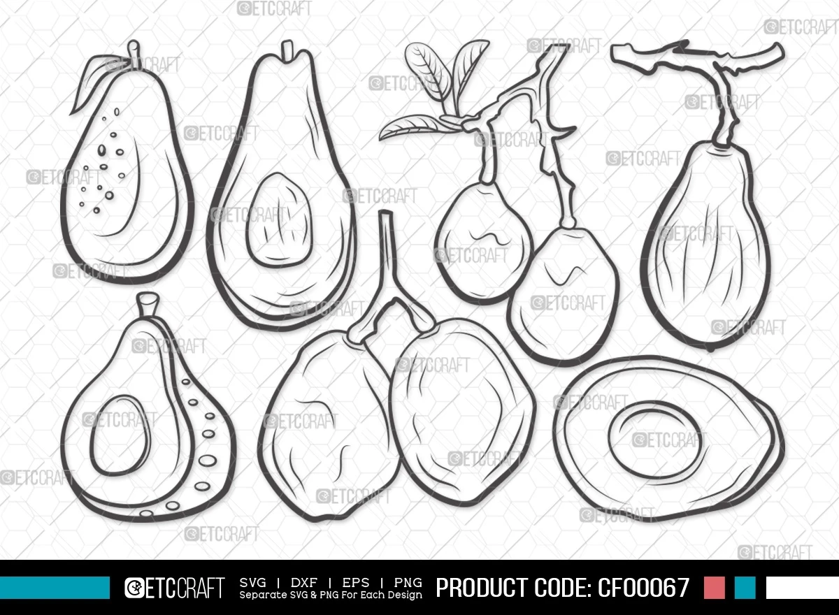 Revitalize your crafting projects with our "Avocado Outline Veggies Fruit" SVG Cut File Bundle. These minimalist yet expressive avocado-themed designs offer a delightful touch to your crafting escapades.