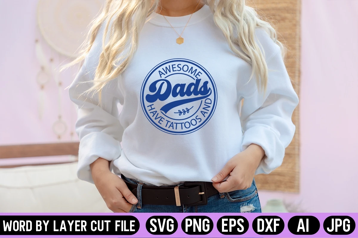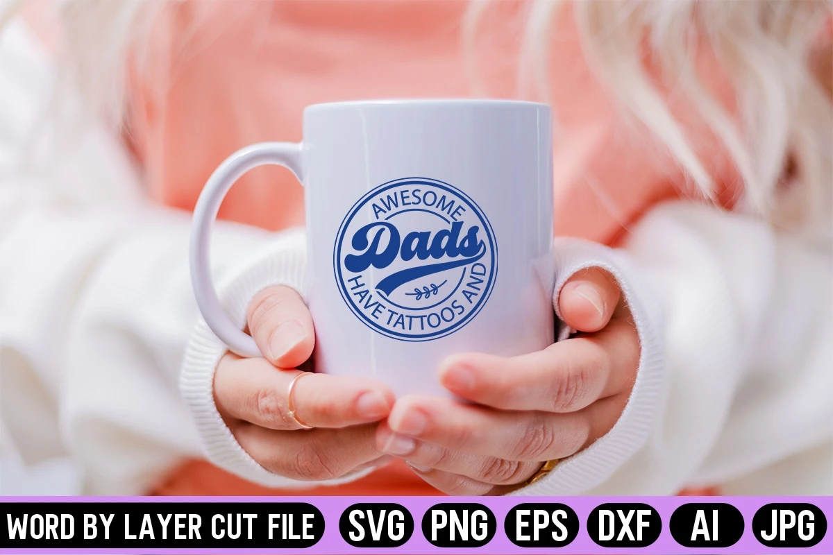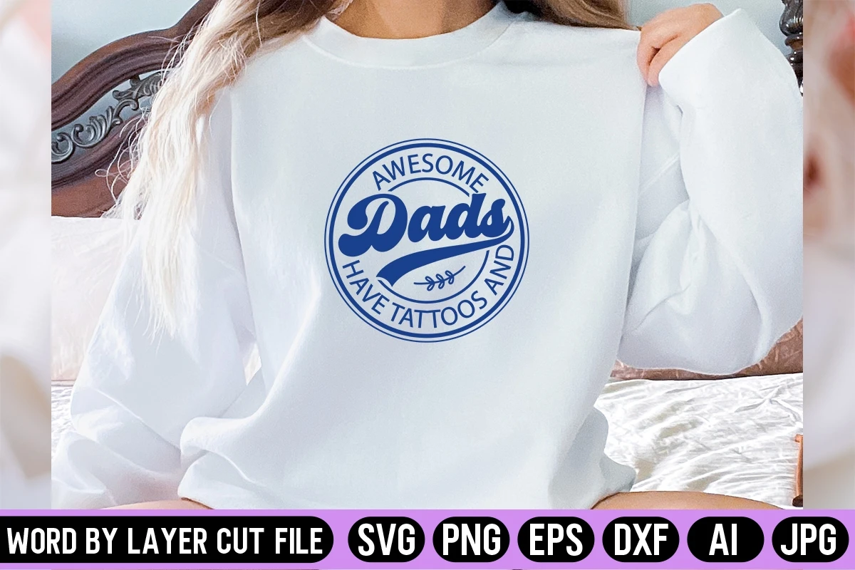 Awesome Dads Have Tattoos And Beards Round Sing SVG Design